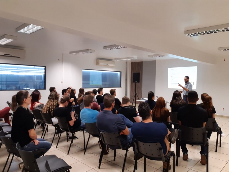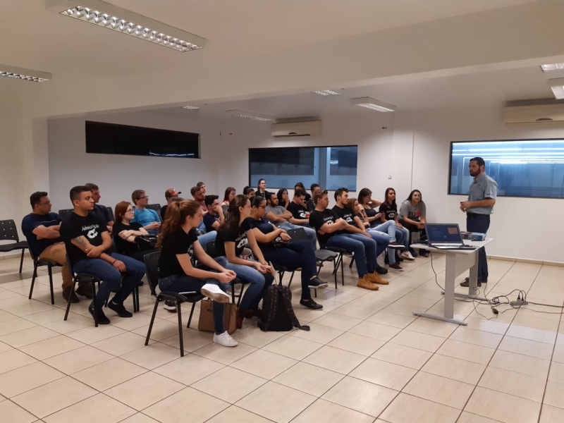 O grupo da FAG Toledo foi recebido pelos colaboradores Anderson Ernsen e Marcio Cerbarro, que é o supervisor comercial da empresa.