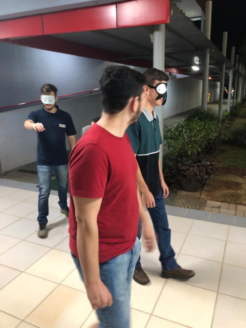 Os estudantes foram vendados e realizaram passeios pelo campus da instituição apenas recebendo instruções de outro colega que foi designado como o líder. "Guiar os colegas às escuras nos torna responsáveis por nossos comandos. E estar vendado e ter que seguir comandos faz com que aprendamos desenvolver outros sentidos e confiança no outro. Além da proposta de confiar e ser responsável esta atividade também contribui para a socialização, integração do grupo e descontração", avalia Anai.