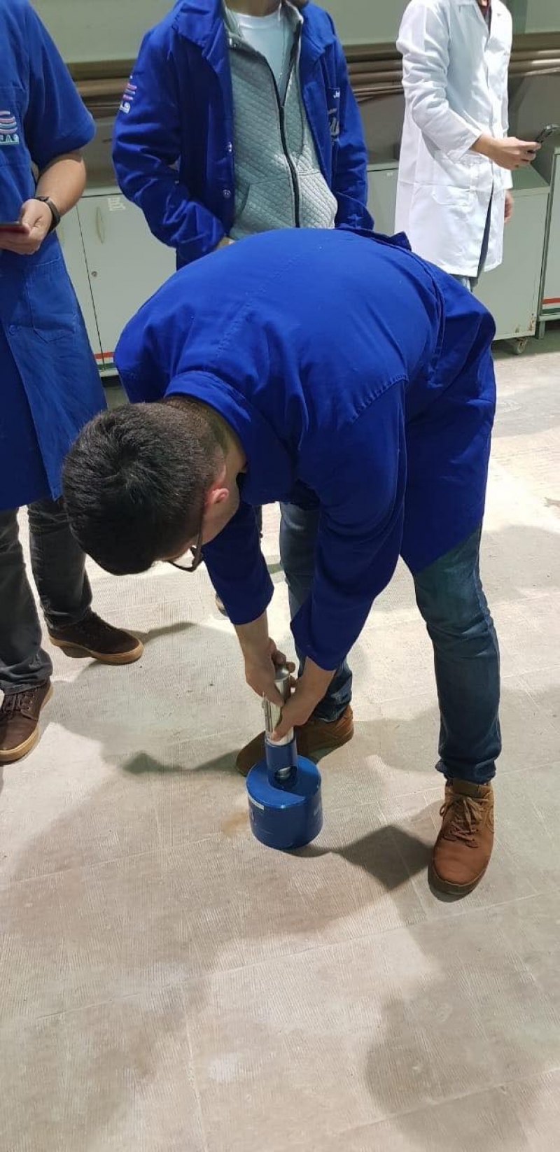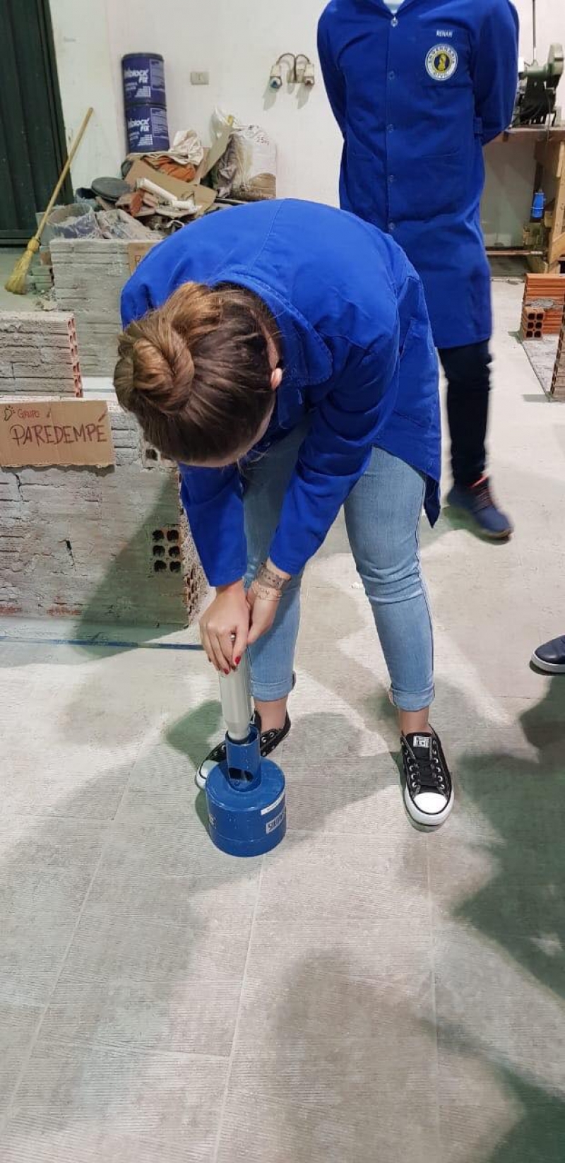 Em atividade prática, acadêmicos de Engenharia Civil avaliam resistência superficial do concreto