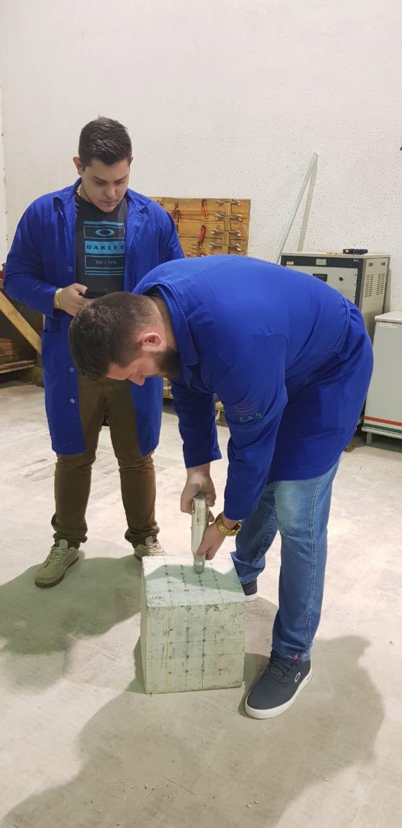 O laboratório de Construção Civil do Centro Universitário FAG foi palco de uma atividade prática importante para o aprendizado na disciplina de Patologias na Construção Civil. Sob supervisão do professor, Ricardo Paganin, os alunos realizaram ensaios de esclerometria, ensaios não destrutivos, em que se utiliza um esclerômetro para identificar o valor aproximado da resistência superficial do concreto.