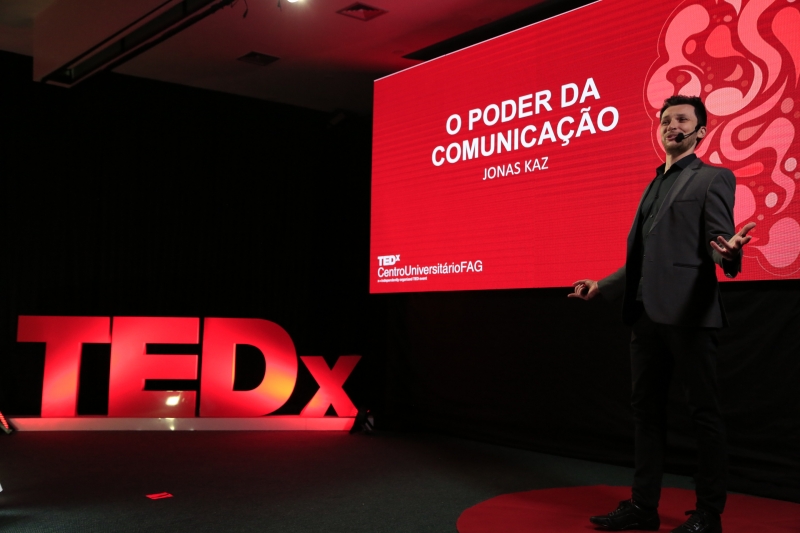 O primeiro a subir no palco do TEDx foi o coach e comunicador, Jonas Kaz, que falou sobre o poder da comunicação e da conexão para que a sociedade possa ser conduzida a um futuro melhor. "Vou compartilhar uma ideia para que as pessoas se comuniquem, mas primeiro que se conectem umas às outras. E explicar que isso faz toda a diferença, seja para uma venda ou para transmitir uma emoção", reflete Jonas.