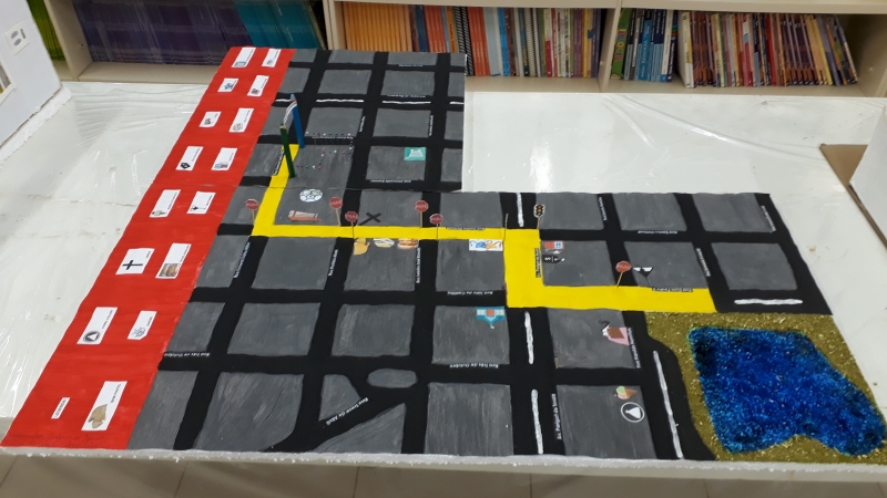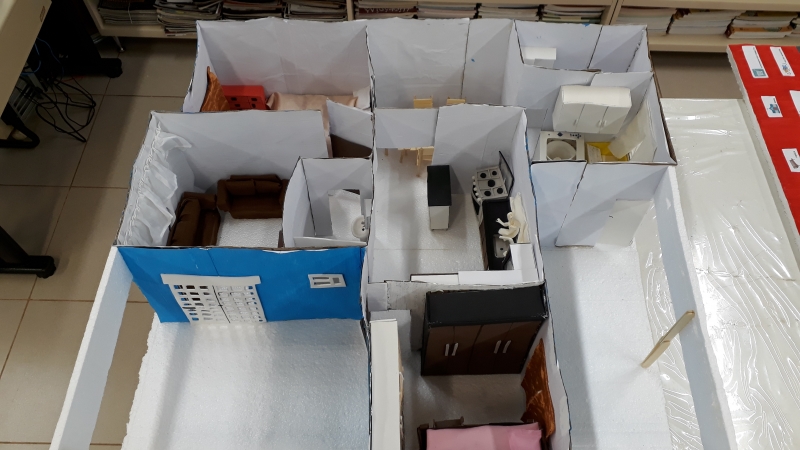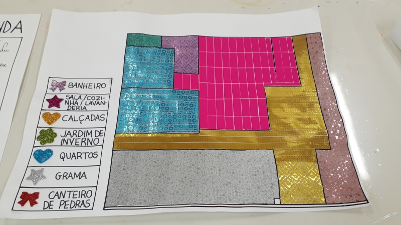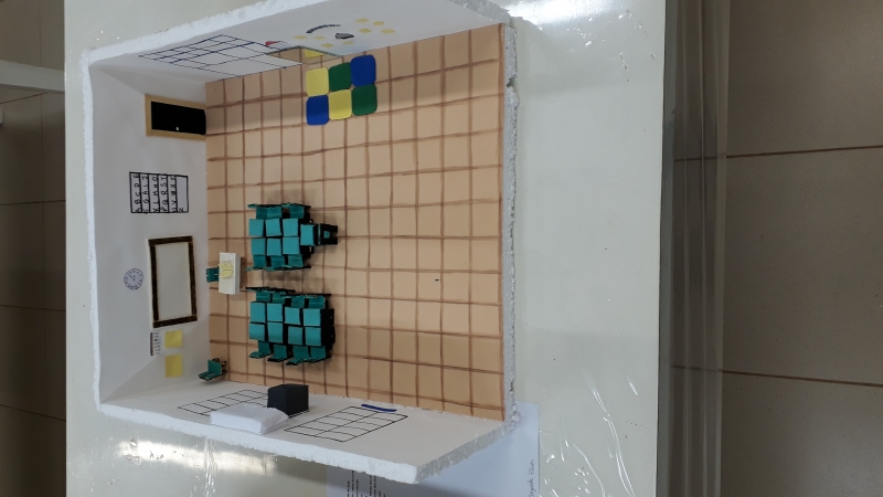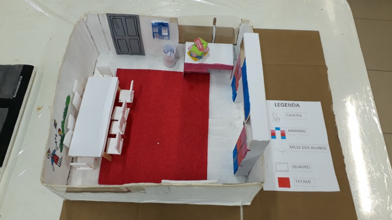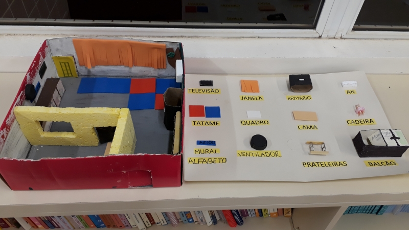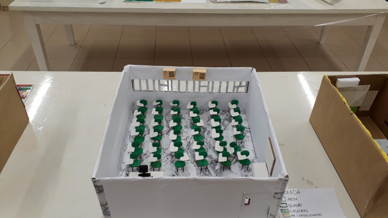 Estudantes recriaram espaços cotidianos, como a sala de aula onde estudam na instituição