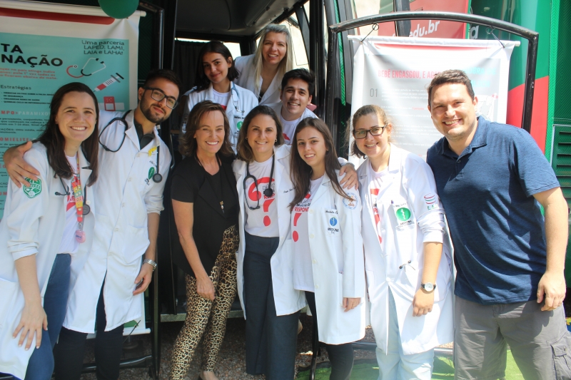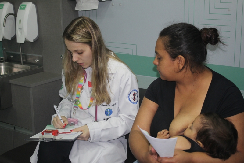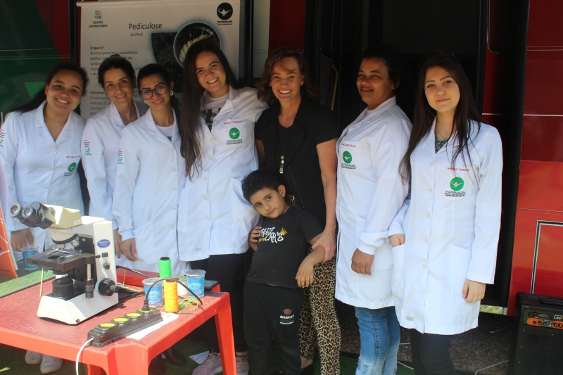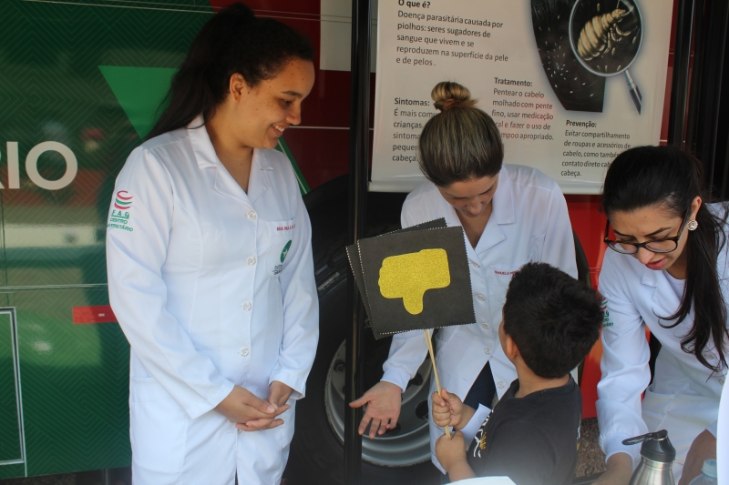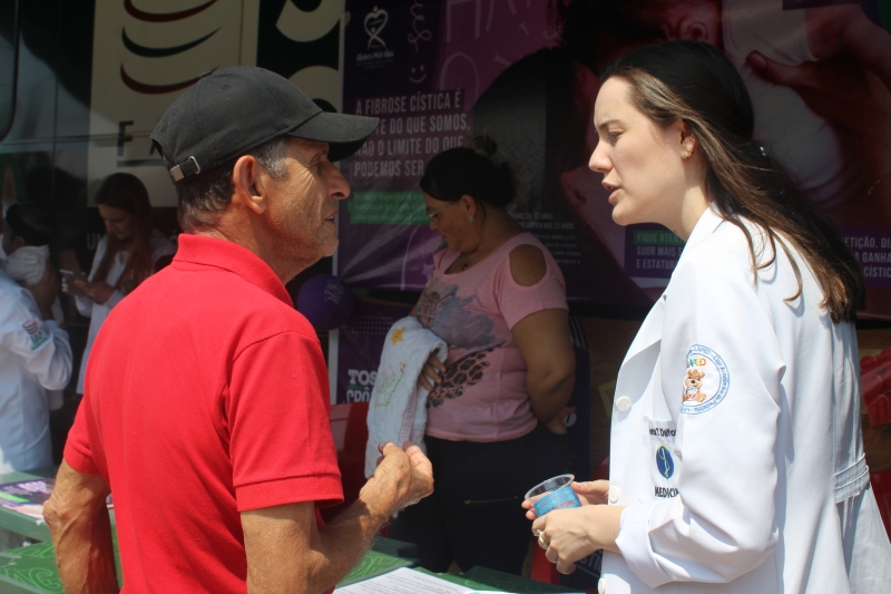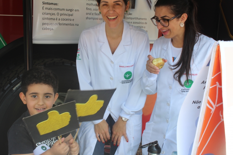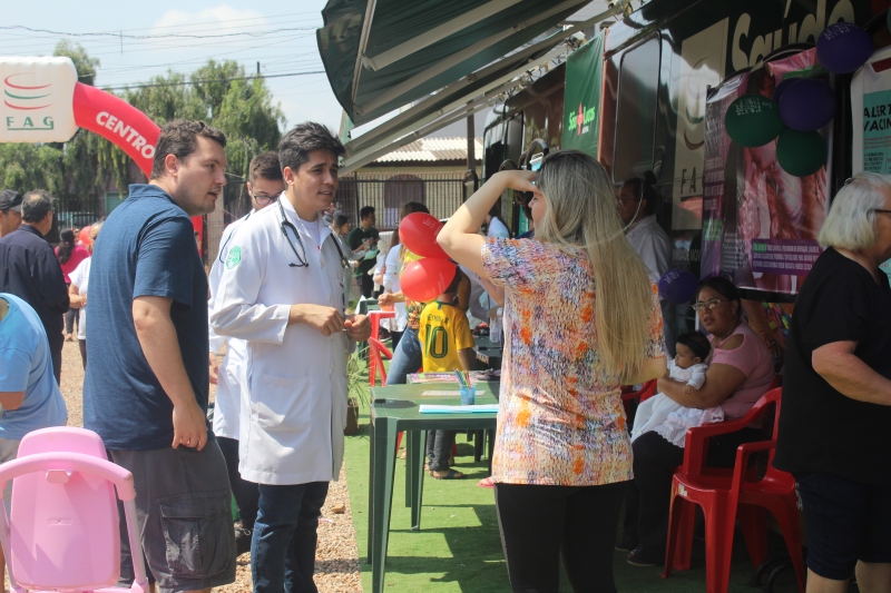 Medicina explicou sobre vacinação e fez consultas em pediatria e pneumopediatria com a médica Mafalda Lúcia Kuhn. Os acadêmicos auxiliaram na pré-consulta e acompanharam a profissional. Joice Aparecida, que é dona de casa, trouxe o filho para consultar. "Muito bom ter esses eventos, a gente aprende a cuidar melhor dos filhos e de nós mesmos. Vou aproveitar que meu filho está com tosse e consultar".