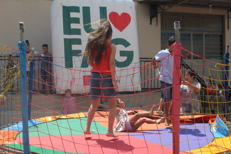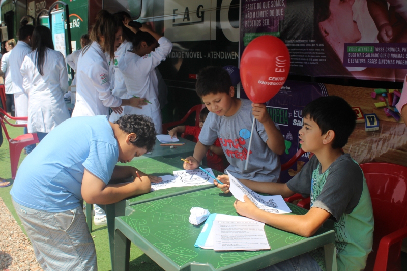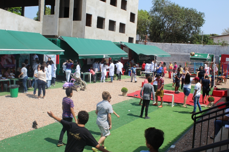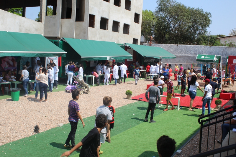 As crianças curtiram as quadras de vôlei, futebol e a cama-elástica. O curso de Fonoaudiologia realizou o serviço de triagem auditiva, que faz testes de audição e dá o encaminhamento correto aos casos que apresentarem alteração. Os acadêmicos de Enfermagem estiveram presentes com várias orientações do projeto Integrador. Informações sobre prevenção e tratamento para sarna e piolho, testes de glicemia e aferição da pressão arterial. Também ensinaram sobre higiene pessoal. As crianças aprenderam como fazer a escovação correta dos dentes. Alimentação saudável também fez parte da atividade de Enfermagem.