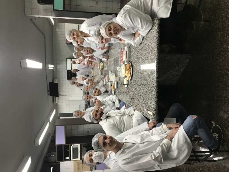 Na disciplina de Tecnologia de Produtos de Origem Animal do curso de Medicina Veterinária, a professora Laís D. Weber levou os alunos para um espaço diferente do habitual: a aula foi realizada na cozinha do Laboratório de Nutrição, onde os alunos aprenderam na prática as reações que acontecem para a fabricação de produtos derivados lácteos.