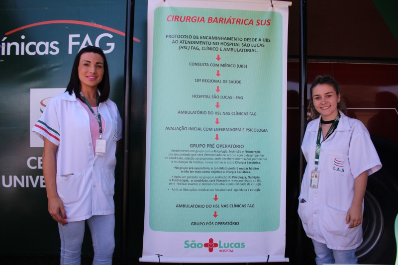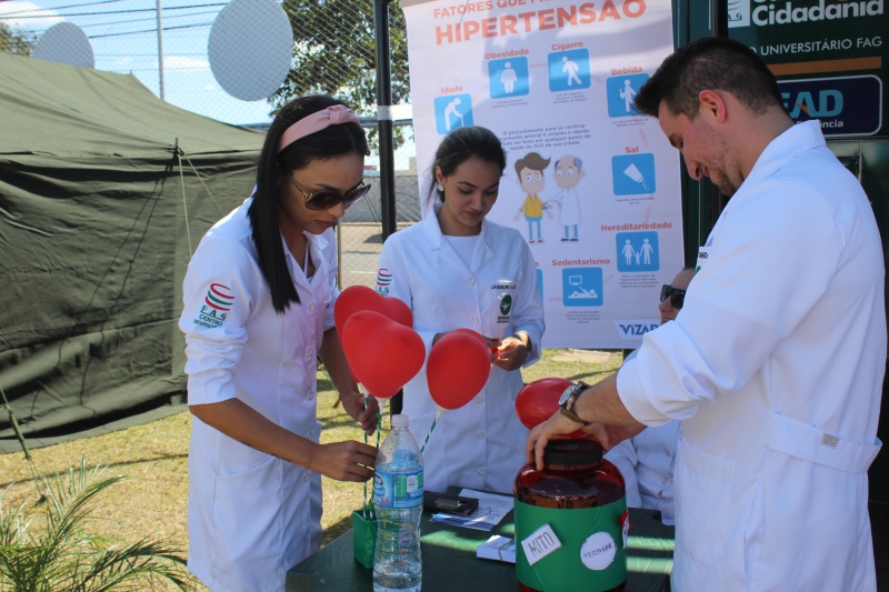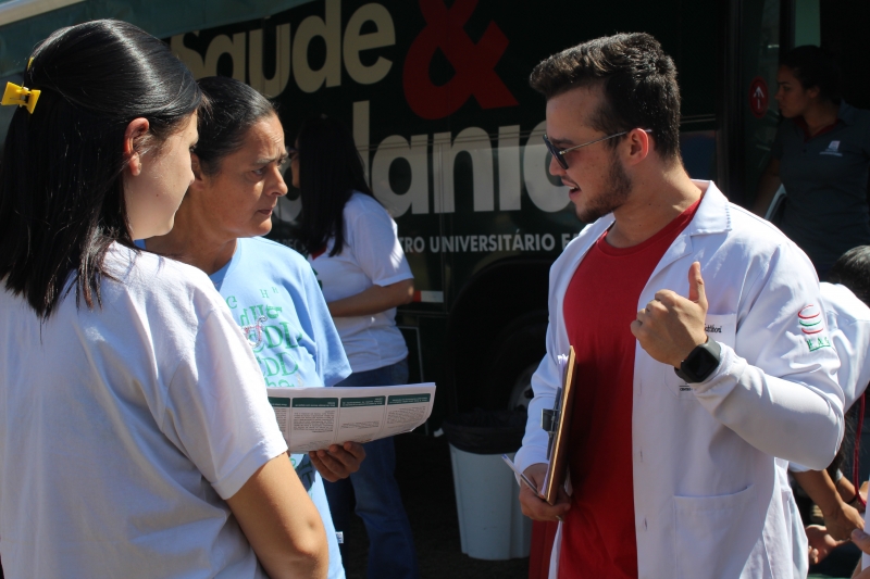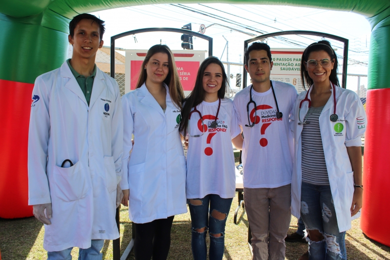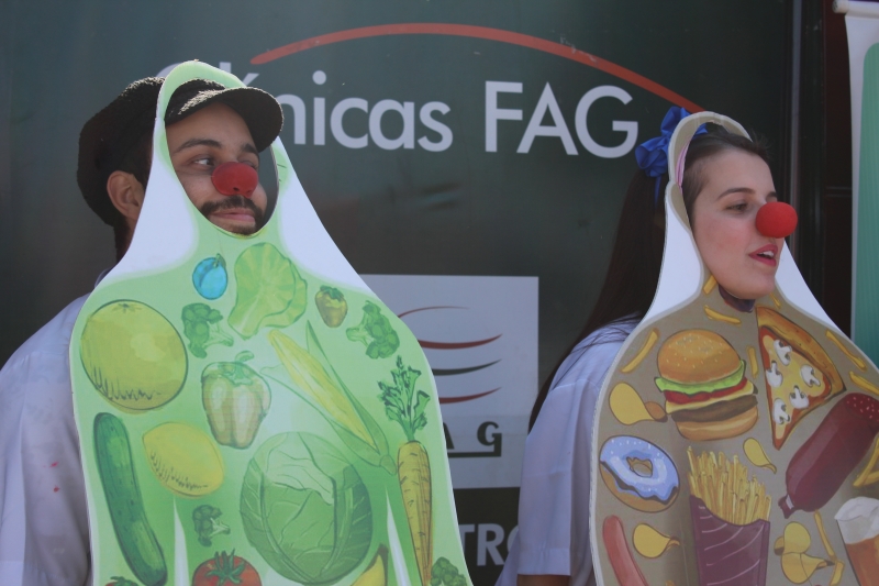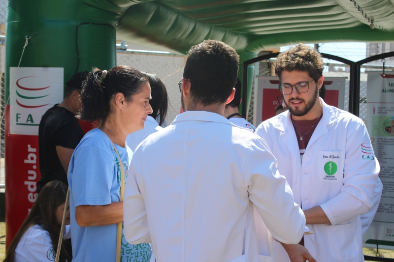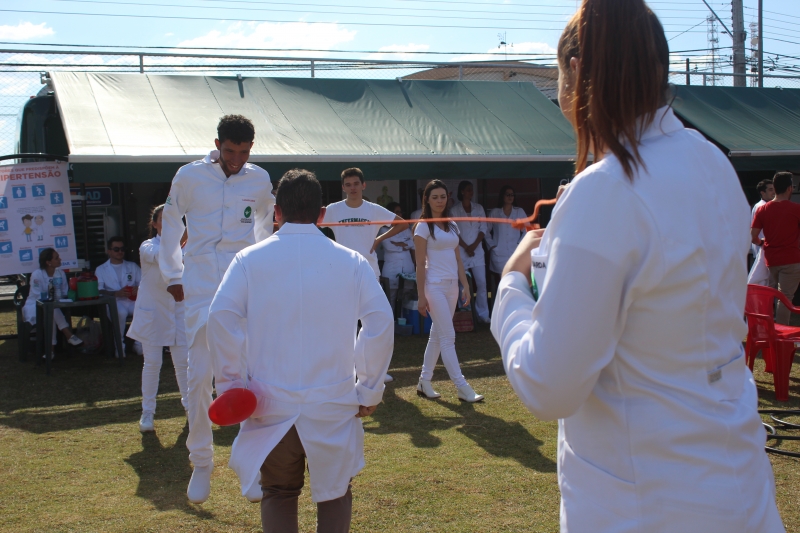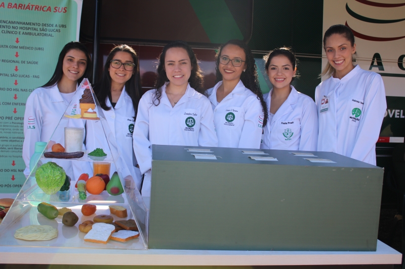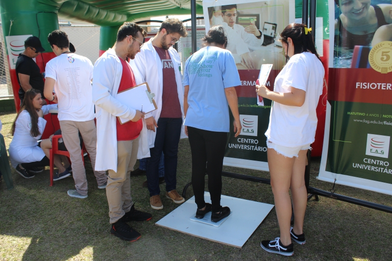 Estiveram presentes os cursos de Enfermagem, Nutrição, Fisioterapia e Medicina. Acadêmicos, acompanhados de professores, falaram sobre mitos e verdades sobre a obesidade, deram dicas sobre a necessidade de manter uma alimentação saudável e atividades físicas na rotina, fizeram aferiação de pressão e testes de glicemia, e ainda analisaram o IMC (Índice de Massa Corporal) dos participantes.