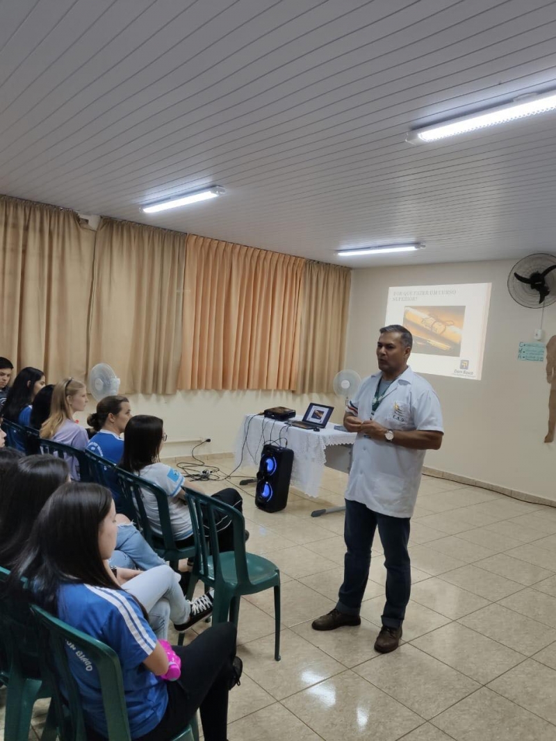 O Vice-reitor do Centro Universitário FAG, Sérgio de Angelis, realiza uma série de visitas em Colégios de Cascavel e região. Nas últimas semanas, o professor passou pelos municípios de Campina da Lagoa (Colégio Estadual Campina da Lagoa), Laranjeiras do Sul (Colégio Laranjeiras do Sul), Quarto Centenário (Colégio Estadual Quarto Centenário e Colégio Estadual Bandeirantes do Oeste) e Piquirivaí (Colégio Estadual Jaelson Biacio). Sérgio abordou as escolhas profissionais e a importância do ensino superior, além de ter tirado diversas dúvidas dos estudantes. O momento também foi aproveitado para falar sobre o Vestibular de Verão, marcado para o dia 26 de outubro.