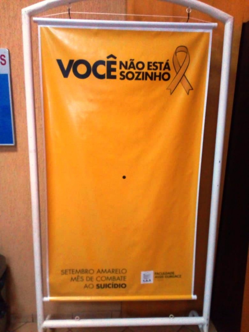 No projeto sobre o setembro amarelo na FAG Toledo, a Agência do curso de Publicidade e Propaganda desenvolveu um cartaz que foi distribuído pela instituição. Trata-se de uma página totalmente amarela com um ponto preto no meio. No alto está foi colocada a frase "você não está sozinho". "É importante reforçar que a pessoa não está só e que o que ela sente pode ser entendido e encaminhado para que ela se sinta melhor. Nós temos o NAE aqui na FAG onde atendemos pessoas com qualquer problema que podem ser identificados como desesperança, tristeza, depressão e angustia de viver neste mundo. É importante que eles saibam que tem para onde recorrer", alerta a psicóloga.