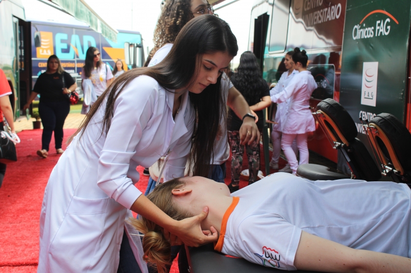 Cada curso preparou oficinas ao estilo "mão na massa", demonstrando especificidades de cada profissão. "É uma experiência diferente, os alunos virem até o Campus, conhecerem um pouco de cada profissão. Aqui na Educação Física mostrar que é muito além de jogar bola, temos várias oficinas para que o aluno sinta o que tem na profissão de Educação Física e de todas as outras profissões aqui da Fag", relata Vitor Moreira, Coordenador de Educação Física. "A importância de trazer o aluno para vivência é que aqui ele tira todas as dúvidas. Uma vez vindo da escola para graduação, ele está cheio de dúvidas, está com medo, indeciso. Quando ele chega aqui tiramos todas essas dúvidas, mostramos um pouquinho do que será a graduação e ele enche o olho de brilho e faz a escolha correta", complementa Marieli Gurgacz, Coordenadora de Design de Interiores. "A gente tem uma estrutura gigantesca para atender a necessidade dos futuros acadêmicos. A Estética envolve muitas áreas, e isso que estamos tentando mostrar para esses alunos que vem conhecer a instituição, é ter uma experiência com a possível graduação que vão escolher", explica Patrícia Dalssasso Fornazari, professora de Estética e Cosmética.