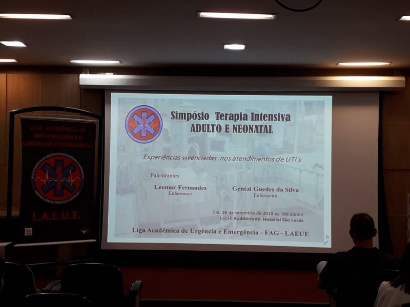 A recém-formada LAEUE (Liga Acadêmica de Enfermagem de Urgência e Emergência) organizou o Simpósio Terapia Intensiva - Adulto e Neonatal - na Fundação Hospitalar São Lucas. Os enfermeiros, Leomar Fernandes e Genézi Guedes da Silva, foram convidados para falar sobre suas atuações em Unidades de Terapia Intensiva.