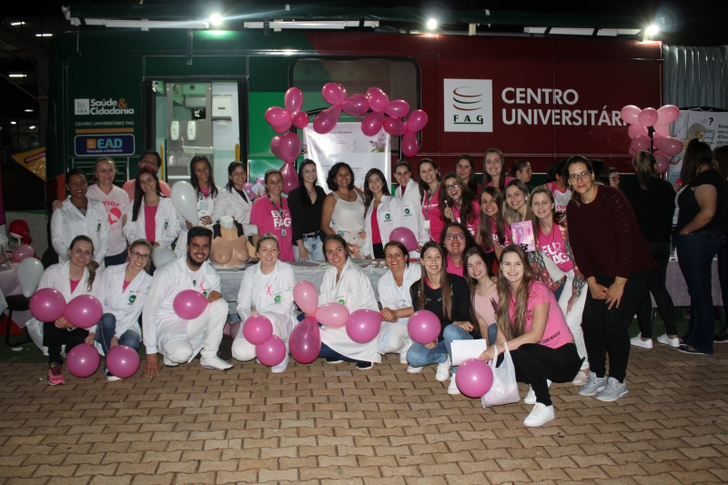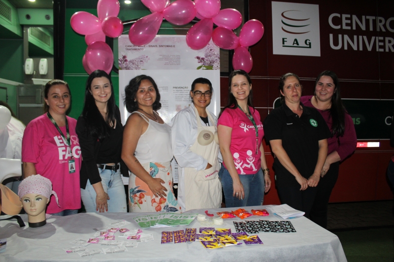 A Grand Via do Centro Universitário FAG foi tomada pelo rosa. Dentro do projeto Integrador do curso de Enfermagem, foram promovidas atividades voltadas à saúde da mulher por acadêmicos de duas turmas do 4º período.