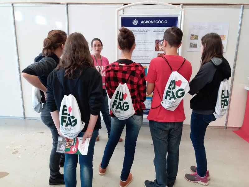 O curso de Gestão do Agronegócio da FAG Toledo participou nesta terça-feira (8) do evento Work FAG realizado no ginásio de esportes da instituição. Estudantes do ensino médio de dezenas de colégios de Toledo e região passaram pelo local e conheceram um pouco sobre as áreas de atuação para o profissional formado na área e também sobre as projeções para o agronegócio nos anos vindouros. "O Brasil tem possibilidade ter crescimento na área de produção de 15% entre 2027 e 2028 e de 30% no volume produzido no período, sem contar quer hoje o agronegócio movimenta 21% do BIP nacional", explica o professor João Ricardo Ramella, responsável pelas palestras realizadas aos visitantes. Segundo ele, o setor tem muitas possibilidades de atuação e precisa de profissionais cada vez mais capacitados. "Tem muito a progredir, não só na questão de grãos, mas também no turismo rural, agroindústria, floricultura, plantas ornamentais, condimentares, hortifrutigranjeiros. São áreas distintas e que precisam de um processo de gestão muito bem feito. O produtor é empresário rural e precisa trazer noções de administração pra dentro da propriedade", alerta.