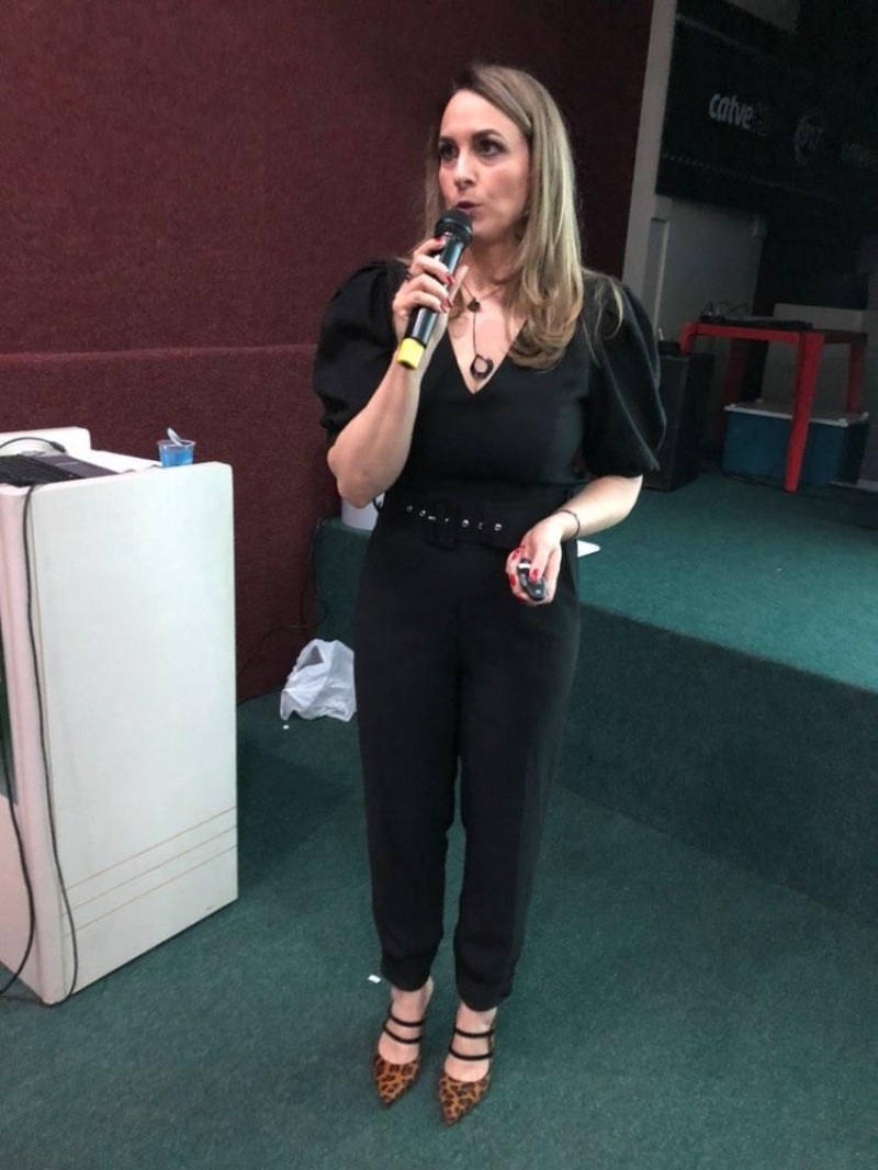 Luciana Fátima Nierotka é empreendedora na área de laboratório de análises clínicas e foi a segunda palestrante da primeira noite. Sua fala foi direcionada à gestão. "Atualmente o mercado precisa de gestores no segmento de laboratórios. Um perfil de gestor de negócios, de suporte, qualidade, clientes, processos e normas", orienta Luciana.