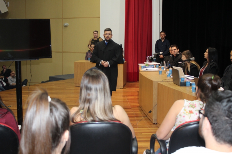 Aos acadêmicos coube a interpretação da defesa, ré e conselho de sentença. Os alunos da escola de magistratura desempenharam a função dos juízes e promotores. O caso julgado no júri simulado foi baseado em um fato real, um homicídio que aconteceu em Cascavel, no ano de 2017, no qual o réu foi acusado de assassinar a própria mãe. Na simulação as identidades foram preservadas por questão de ética. "Os alunos do primeiro ano serão sorteados para compor o júri (conselho de sentença), a defesa e a acusação demonstrarão todos os argumentos para convencer os jurados, que decidem as questões relativas ao crime", explica Guilherme Rezende, professor do Centro FAG e da Emap.