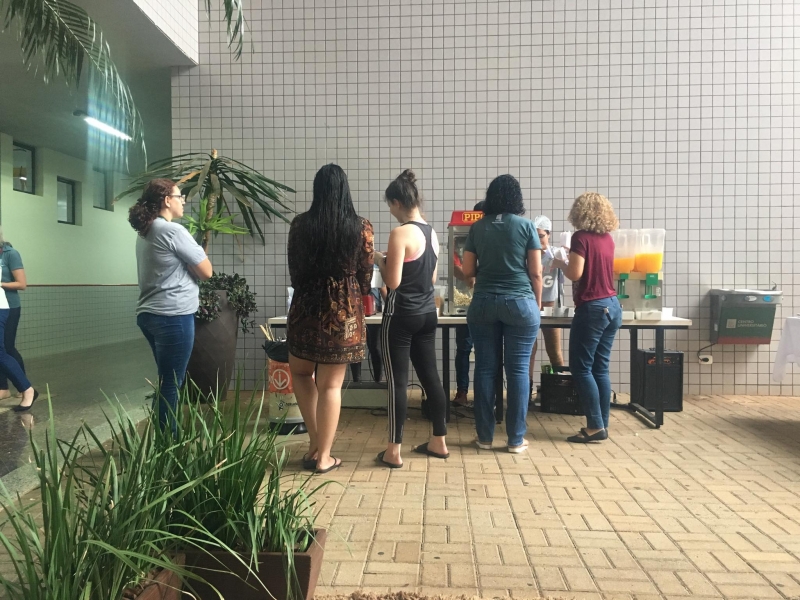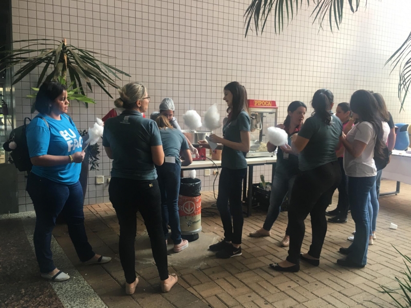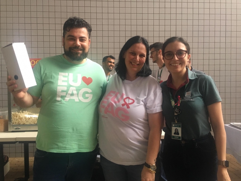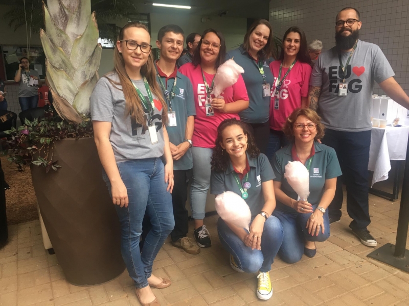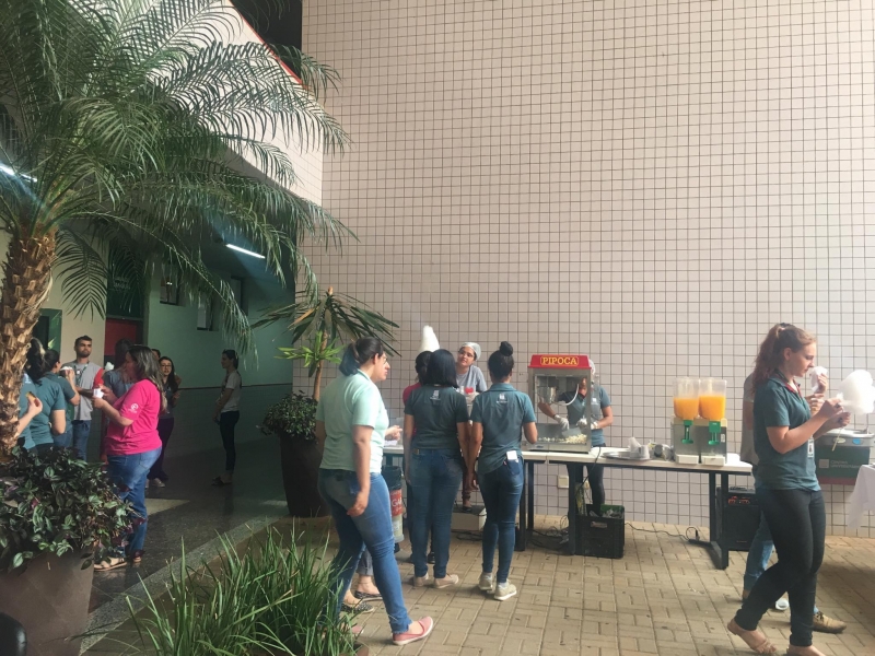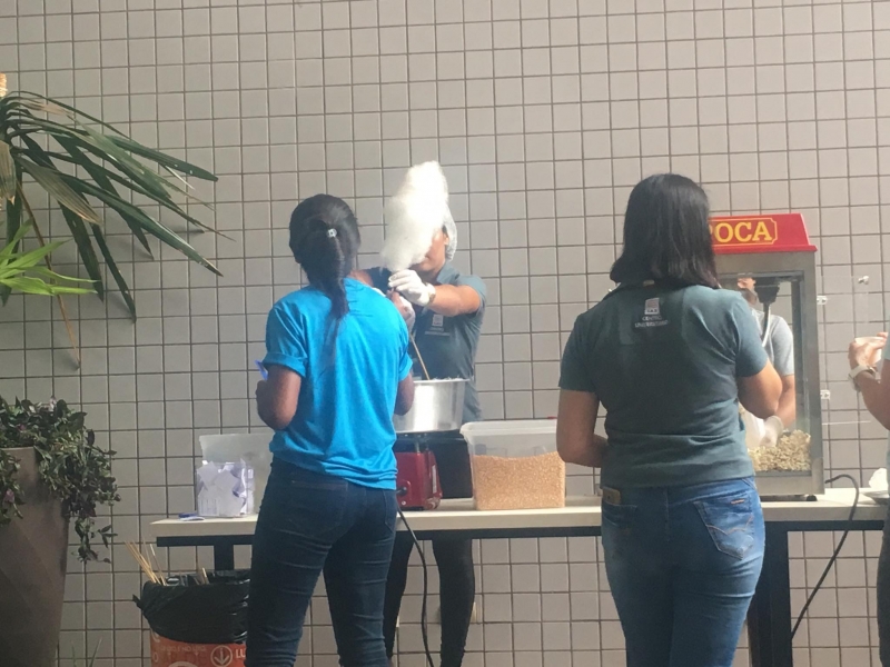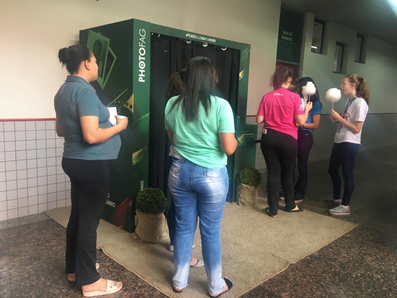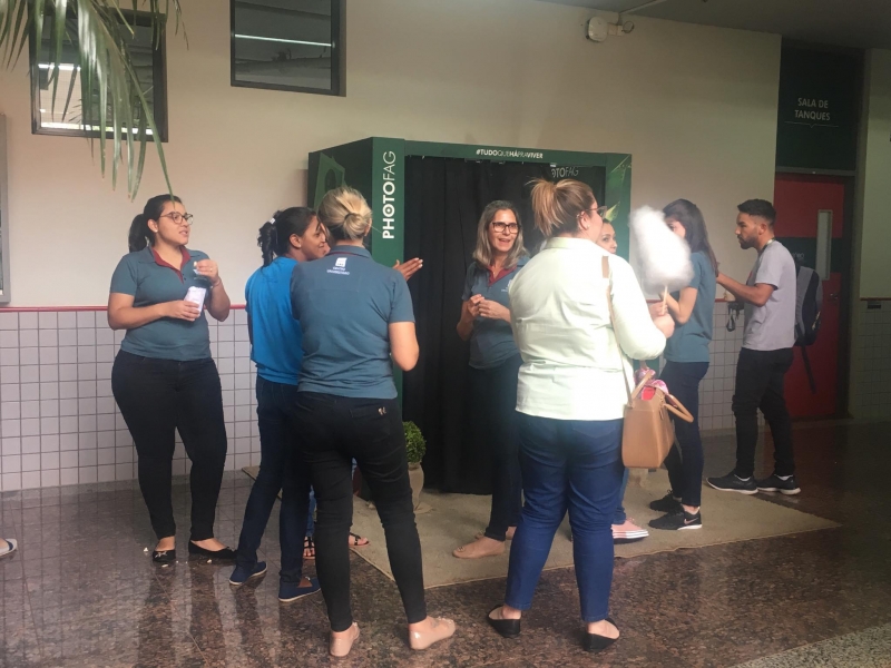A Direção do Centro FAG, o Departamento de Recursos Humanos e o setor de Eventos montaram uma estrutura aconchegante no térreo do Bloco 1 da Instituição. Ali, os colaboradores puderam se servir de pipoca, algodão doce, doces e salgados, além de se divertirem na cabine de fotos, com revelações na hora.