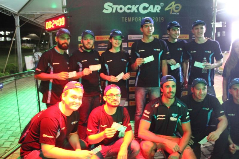 Os técnicos da equipe deram um intensivo sobre a troca do pneu aos alunos. O melhor tempo foi da dupla Wallace Castelo Lopes e Rafael Gustavo Ianesko, do curso de Educação Física. O pit stop deles foi de 8 segundo e 8 décimos, que rendeu o principal prêmio da prova, o camarote para assistir a 9ª etapa da Stock Car, domingo (20), no autódromo Zilmar Beux, em Cascavel. "Na hora, com a adrenalina, parece que o tempo foi bem menor. Precisa de muito treino para conseguir chegar no nível das equipes", disse Wallace.