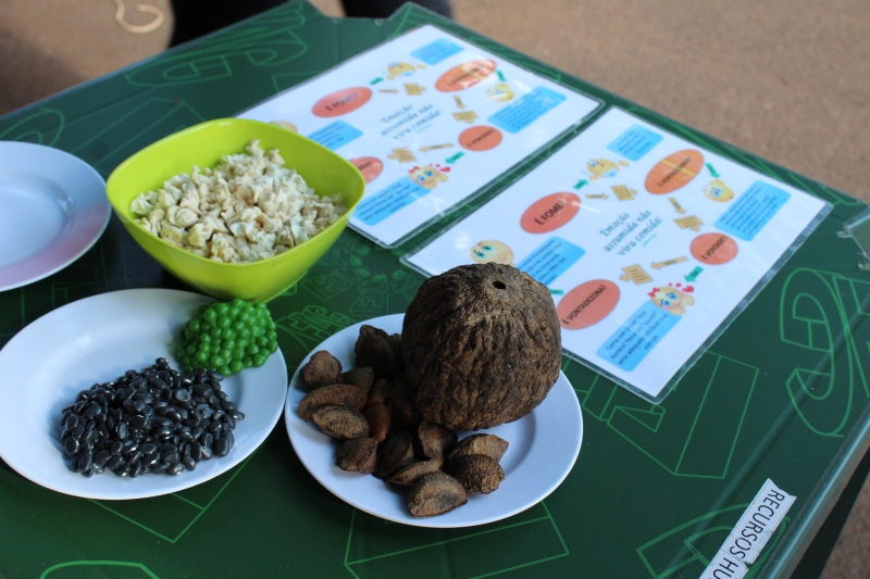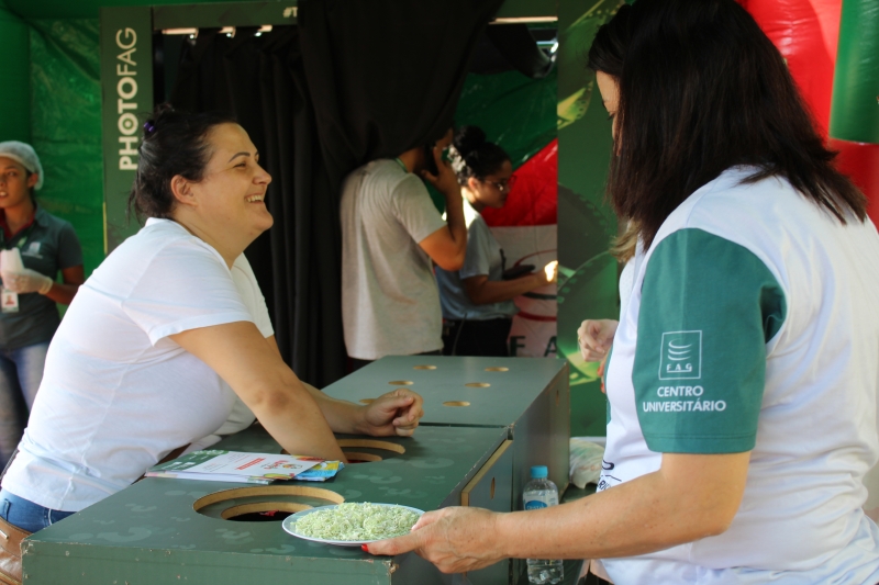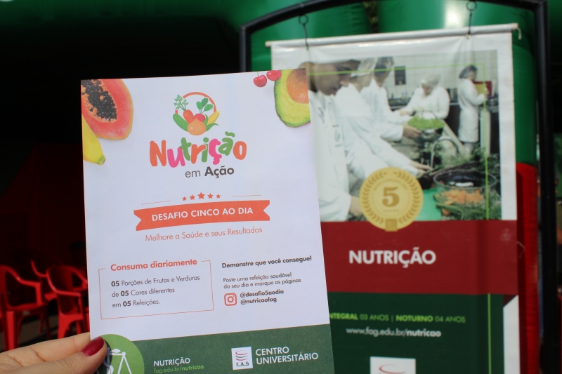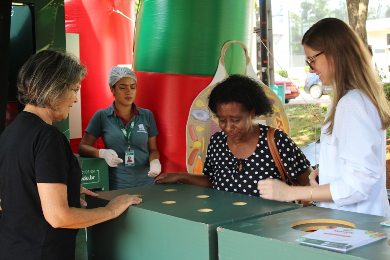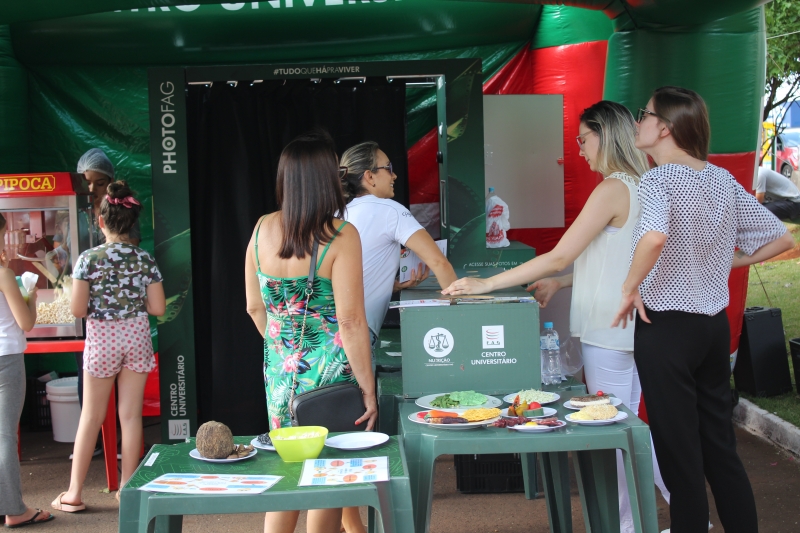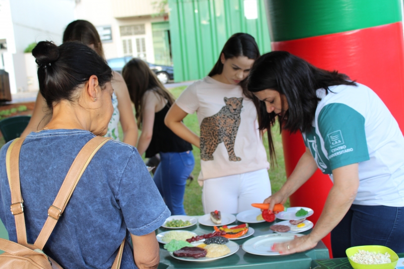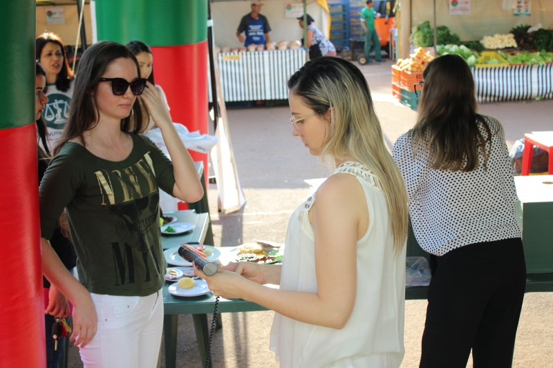 Acadêmicos e professores do curso propuseram aos frequentadores da Feira desafios de tato e olfato para que as pessoas conheçam alimentos funcionais, como o cacau, castanha-do-Pará, ervas, entre outros, que trazem efeitos benéficos à saúde. Foram repassadas também informações sobre como montar um prato saudável. "O mais importante é procurarmos nos alimentar de comida de verdade, consumir menos produtos industrializados. Também falamos sobre o Desafio 5 ao Dia, que propõe que por dia sejam consumidas 5 porções de frutas e verduras, de 5 cores diferentes em 5 refeições no seu dia", relata Gabriela Rodrigues, acadêmica do 6º período de Nutrição.