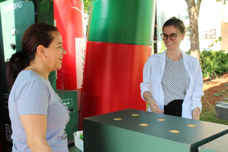 Michelle Zampieri, acadêmica do 2º período, fez parte da equipe que realizou palestras sobre alimentação saudável, dietas da moda, rotulagem, guia alimentar e doenças crônicas. "Esse momento abre um pouco a mente das pessoas. Mesmo aqui na Feira, encontramos opções como pastel, refrigerante. Então, nossa intenção foi demonstrar que é possível mesclar, não precisa ser tão rígido, é importante saber dosar. Enquanto acadêmica, é interessante o contato com o público, pois ajuda no aprendizado", detalha.