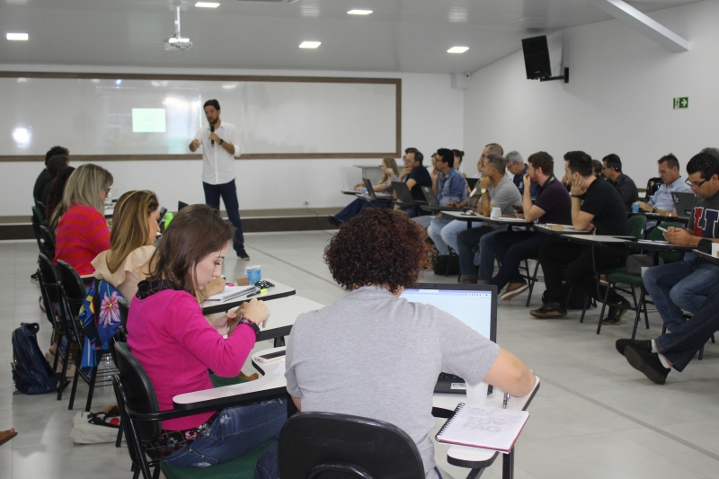 Professores do Centro Universitário FAG tornaram-se alunos. Um grupo de cerca de 50 docentes participou do encontro presencial do Curso de Formação em Metodologias Ativas de Aprendizagem: Peer Instruction, uma proposta do NAD (Núcleo de Apoio Docente). Após as aulas no ambiente virtual, os professores assistiram às explicações do diretor do Grupo A, membro do projeto SAGAH e do conselho editorial do portal Desafios da Educação, Gustavo Hoffmann.