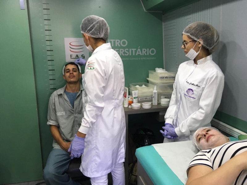 Os cursos da saúde do Centro Universitário FAG e a graduação de Estética e Cosmética da Faculdade Dom Bosco realizaram atendimentos com o Comboio da Cidadania na Fundação Hospitalar São Lucas. A intenção foi dar início à implantação do Programa 5 S no Hospital, oferecendo uma série de procedimentos a colaboradores, pacientes e familiares.