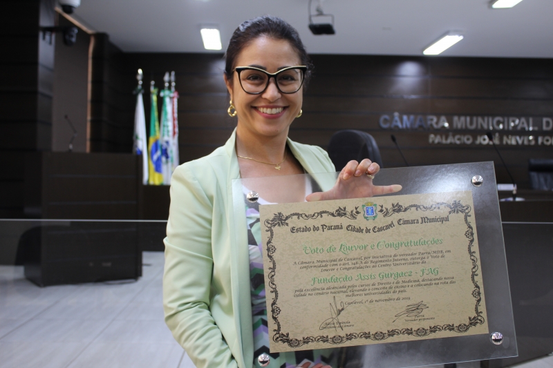 A partir da sugestão do vereador, a proposta de homenagem foi votada e aprovada por unanimidade pelos parlamentares. Segundo Parra, a entrega do Voto e Louvor e Congratulações consiste em um reconhecimento pelo que os cursos e a Instituição têm feito por Cascavel. "Assim que eu soube das avaliações tão positivas para os cursos, resolvi propor a homenagem, já que ter cursos com essa qualidade representa muito para nossa cidade. Demonstra que não perdemos em nada para os grandes centros. Parabenizo o Centro FAG e a família Gurgacz pelo trabalho realizado", explica Parra.