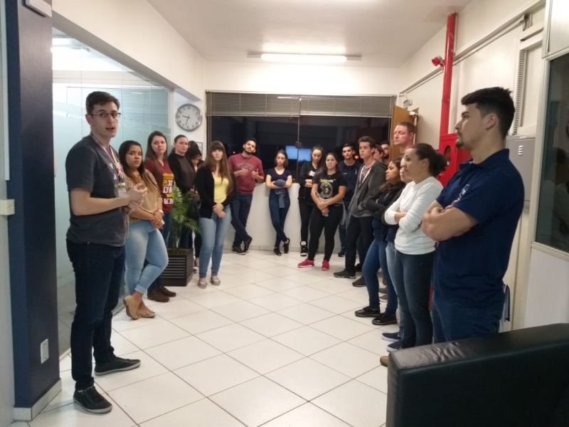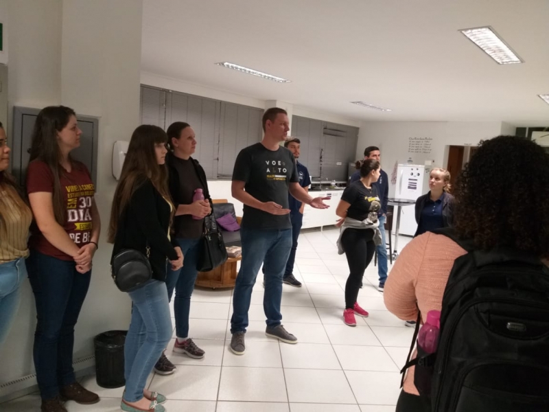Os acadêmicos do curso de Gestão Financeira e Administração da FAG Toledo realizaram recentemente uma visita técnica a Inside Sistemas, empresa da área de tecnologia com sede em Toledo. A atividade foi proposta pela professora Djeimi Neske, que ministra a disciplina de Análise de Projetos. De acordo com o a docente, a visita teve como objetivo proporcionar aos acadêmicos o entendimento da sistemática de trabalho da empresa, principalmente na área de gestão de projetos. "Os gestores expuseram que a metodologia que melhor se adapta à empresa é a ágil e que a ferramenta utilizada é o Scrum. No que tange a tomada de decisão, uma vez elaborados os projetos passam pela avaliação dos diretores que analisam a viabilidade dos mesmos", relata a docente, ressaltando sobre a importância da visita para a absorção prática de conteúdos trabalhos em aula. "O tema foi muito alinhado ao que trabalhamos na disciplina, por isso a visita foi muito valiosa para assimilação dos nossos discentes", avalia.