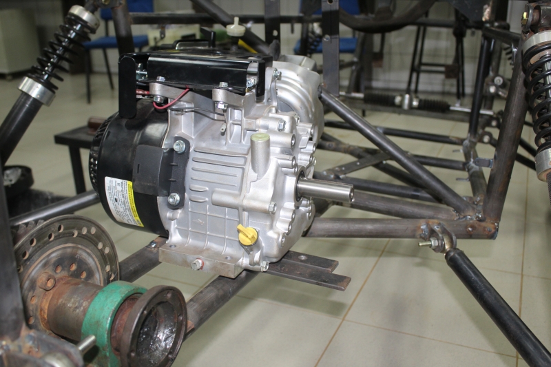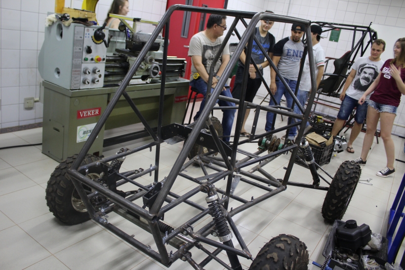 O curso de Engenharia Mecânica ficou responsável pelo projeto do chassi, instalação do motor, parte de transmissão e freio. Os alunos das Engenharias de Controle e Automação e Elétrica desenvolveram os componentes elétricos.