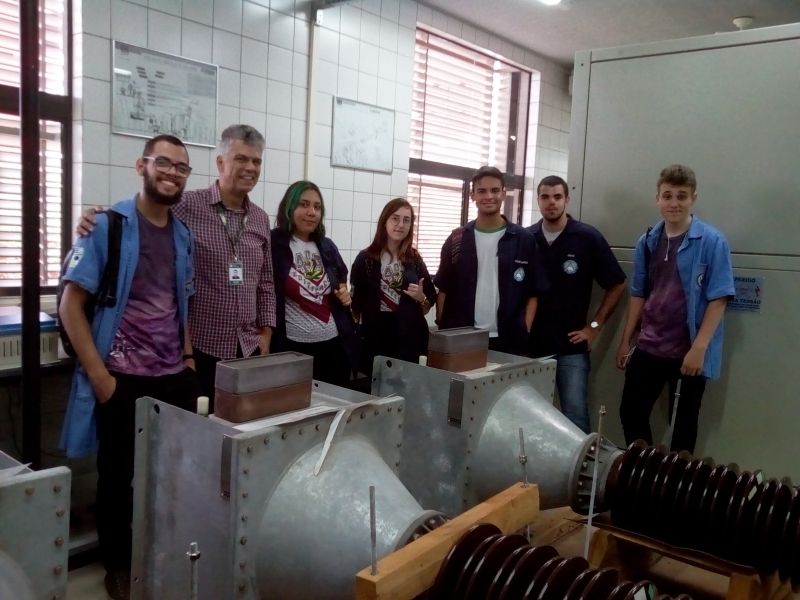 Bastante interessados, os alunos do curso de Técnico em Eletrônica foram conhecer dois dos mais de vinte laboratórios referente aos cursos de Engenharia Elétrica e Engenharia de Controle e Automação do Centro FAG: os Laboratórios de Máquinas e Seccionamento e o Laboratório de Fontes Renováveis. Os alunos, acompanhados pelo Prof. Helder, tiveram contato com alguns dispositivos de manobra e seccionamento usados e Estações Elevadoras e Rebaixadoras de Energia e Elétrica. O professor explicou como esses dispositivos funcionam efetivamente em campo. Ainda destacou o funcionamento de transformadores especiais, cujo modelo, em todo o Sul do Brasil, em termos de laboratório, só existe Centro Universitário FAG. "Foi muito legal conhecer um pouco da FAG e do que é participar desta instituição", pontuou o aluno do 4.º ano de Técnico em Eletrônica do CEEP, Vitor Augusto R. Campos.