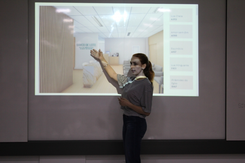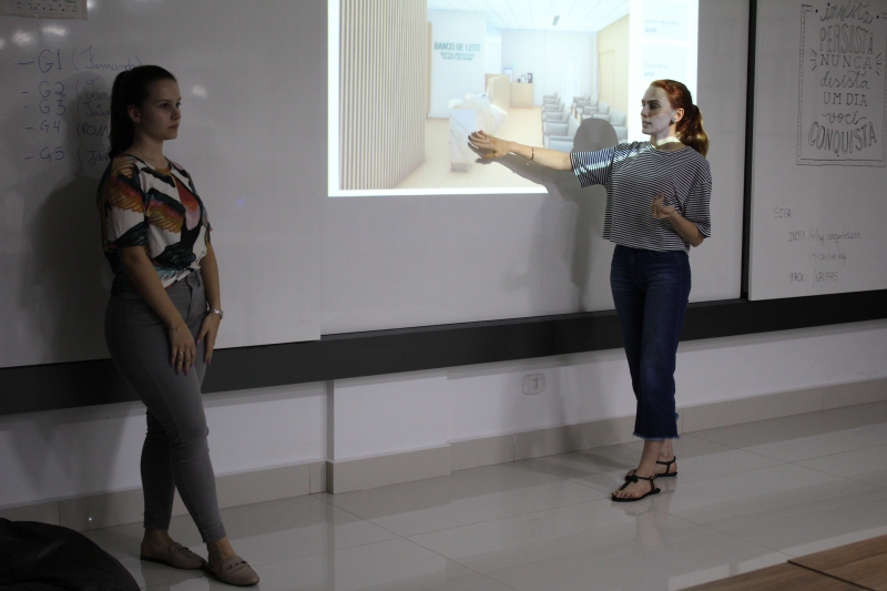 Neste ano, o Hospital Universitário do Oeste do Paraná (HUOP) foi a Instituição contemplada. O desafio foi projetar a arquitetura de interiores das 7 recepções do hospital, mais a identidade visual. Divididos em oito grupos, os acadêmicos apresentaram na segunda-feira (04) as propostas para as recepções do Banco de Leite, Centro de Diagnóstico por Imagens, Ceapac (Centro de Atenção e Pesquisa em Anomalias Craniofaciais), Ambulatório, Pronto Socorro, Centro de Queimados, Recepção de Visitas e Comunicação Visual.