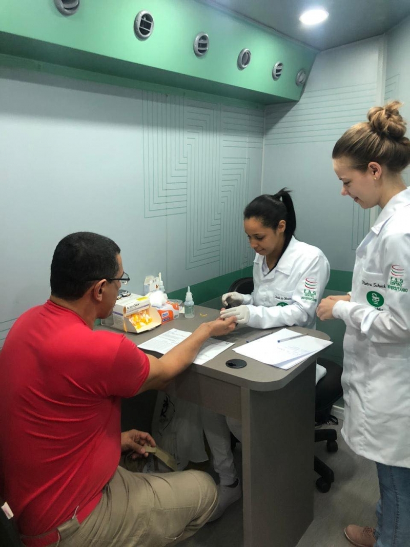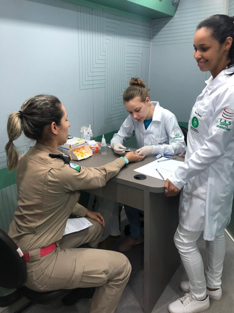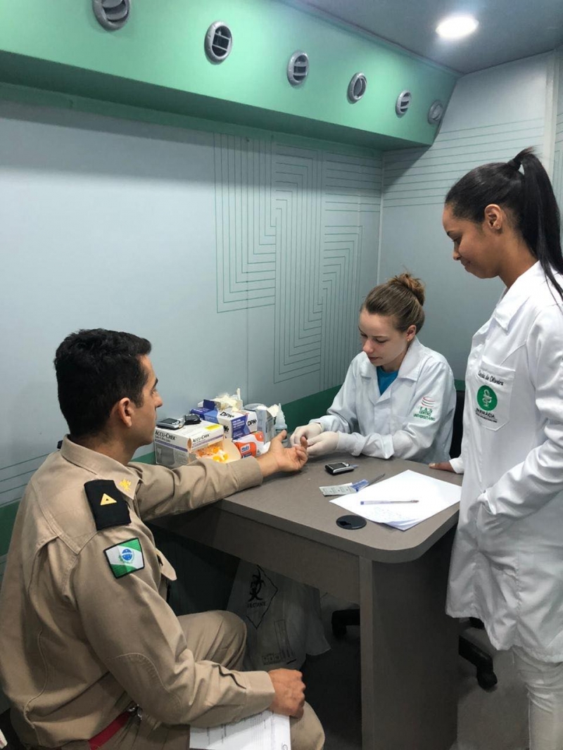 Os cursos de Fonoaudiologia, Nutrição e Farmácia realizaram atendimentos em prol da saúde coletiva. Fonoaudiologia realizou triagem auditiva, com orientações quanto à saúde auditiva e prevenção de perdas, principalmente por conta das sirenes dos veículos. Farmácia fez aferição de pressão e glicemia capilar. Nutrição realizou bioimpedância, que é a medição da composição corporal.