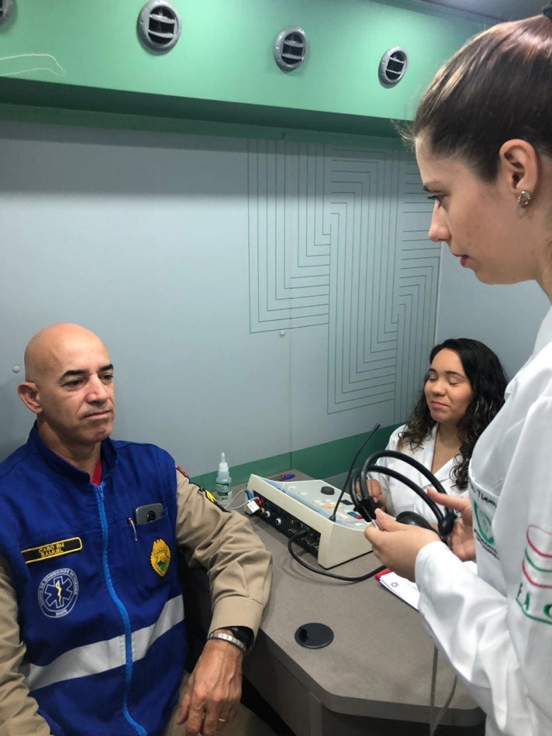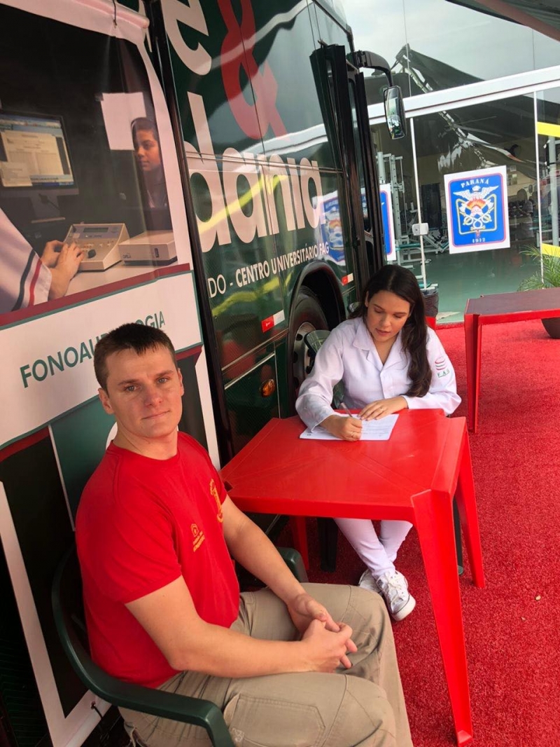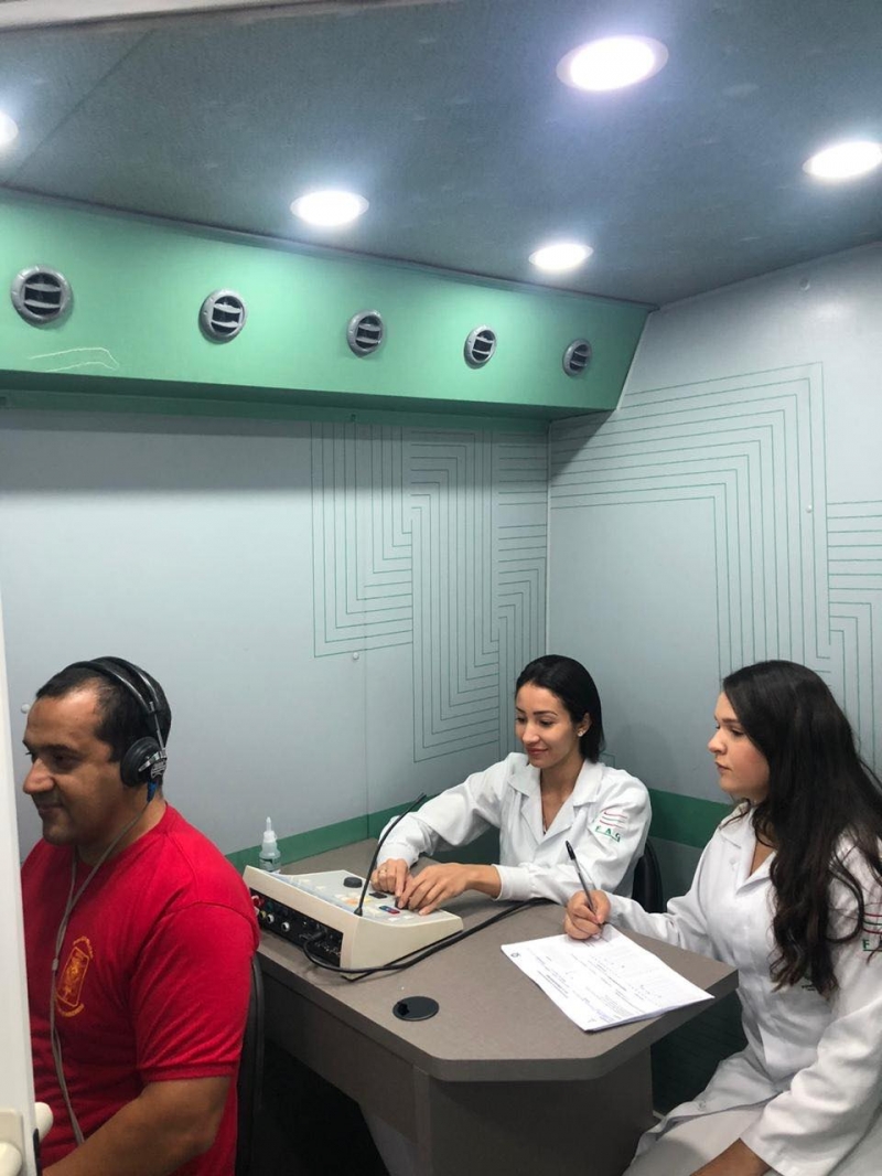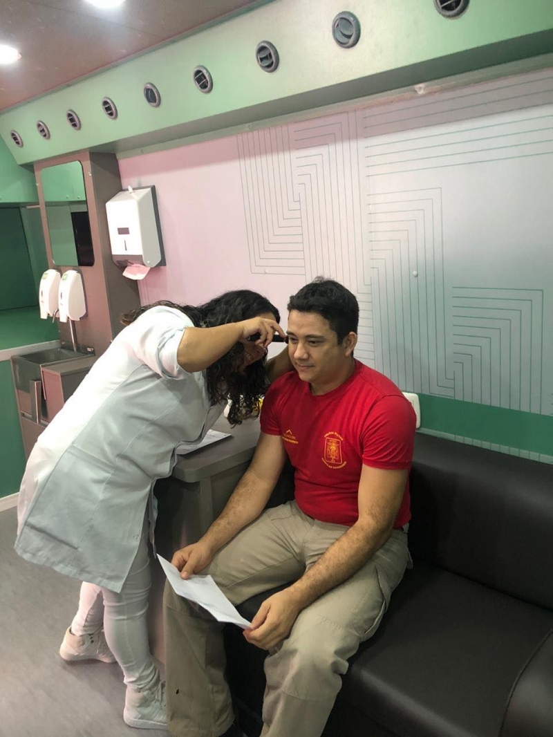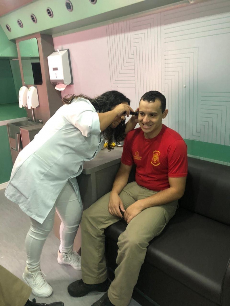 Fonoaudiologia realizou triagem auditiva, com orientações quanto à saúde auditiva e prevenção de perdas, principalmente por conta das sirenes