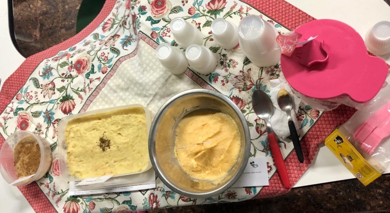 O grupo da Laura Ody Bassi, preparou uma papinha de bolacha, danone caseiro, purê de batatas e um suco, que foi engrossado para não ficar tão líquido. O caso clínico, simulado, que as alunas estudaram foi de uma paciente que sofreu um acidente de jetski, com um trauma grave na região do pescoço. E não é só a consistência da alimentação que elas recomendam, há também uma série de exercícios simples para recuperar a musculatura. "Nós avaliamos o caso dessa paciente e diagnosticamos que levaria um bom tempo, ainda, para poder introduzir a alimentação. No entanto, é possível reabilitar. Essa atividade exigiu muito conhecimento de nós, alunos. Vamos nos deparar com essa realidade no mercado de trabalho e desenvolver a prática na graduação é muito importante".