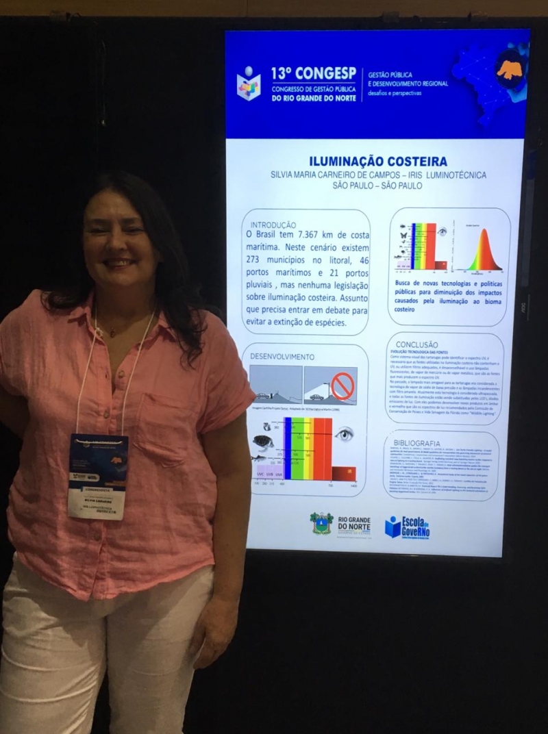 Hoje (13) Silvia fez a apresentação do seu artigo intitulado "Iluminação Costeira: Busca de novas tecnologias e políticas públicas para a diminuição dos impactos causados pela Iluminação ao bioma costeiro", que trata sobre a influência da luz nesses ambientes e o impacto da iluminação artificial na vida das tartarugas marinhas, apresentando soluções de novas tecnologias em iluminação, além de destacar as políticas públicas já adotadas em outros locais para evitar esse problema.
