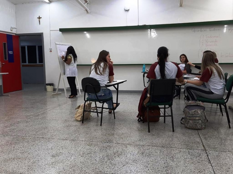 O trabalho prático teve como base o texto do autor Jose Carlos Libâneo, onde são abordadas as tendências Liberais e Progressistas a partir da Tradicional, Escola Nova, Tecnicismo, Libertadora e Crítico Social dos Conteúdos. "Gerou muitas aprendizagens, pois o texto foi absorvido e transformado em enredo para dramatização. Isto envolve uma compreensão significativa do conteúdo estudado, além de trabalhar com isso outras habilidades dinamizando assim a prática docente", explica a docente responsável pela atividade.