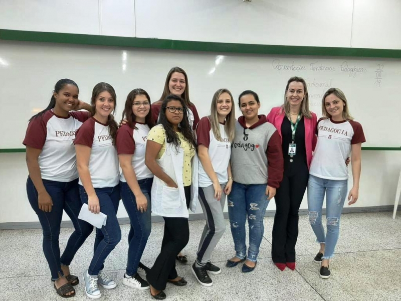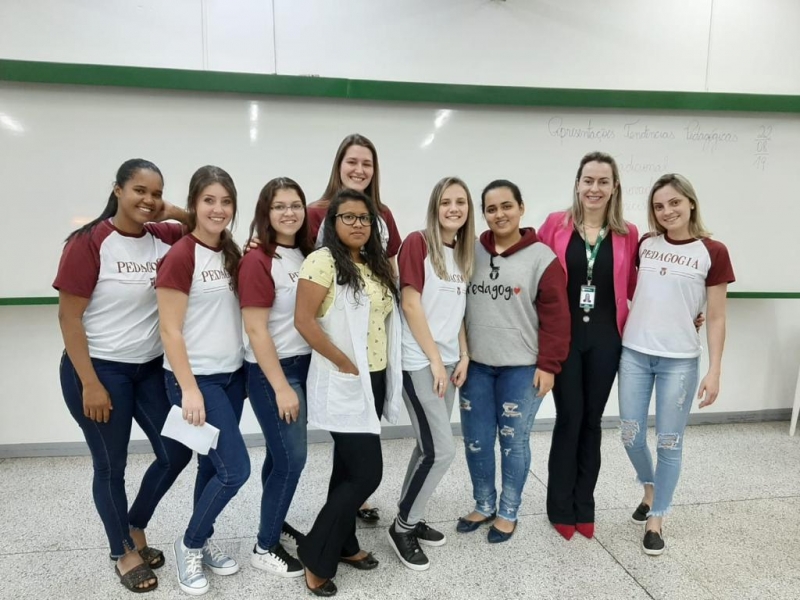 A turma do 2º período de Pedagogia da FAG Toledo realizou um trabalho prático bem desafiador na última aula da disciplina de Didática, ministrada pela Professora Keili Lucí Rocha. A atividade levou os acadêmicos a dramatizarem as Tendências Pedagógicas, tema trabalhado de forma teórica no início do bimestre na disciplina. As temáticas ficaram livres para esta dramatização, sendo que as equipes produziram um jornal pedagógico com entrevistas e reportagens e também um café com didática trazendo comparativos de práticas escolares atuais e tradicionais.