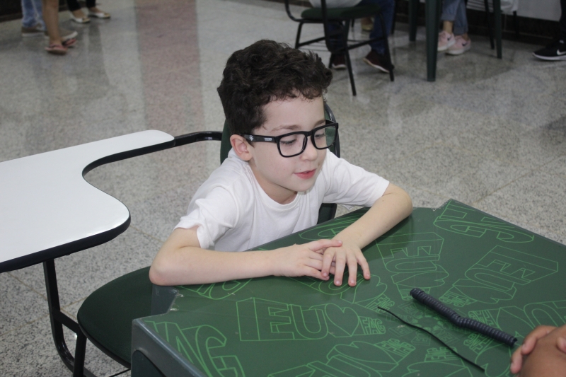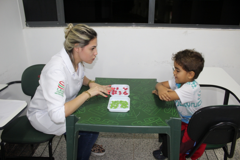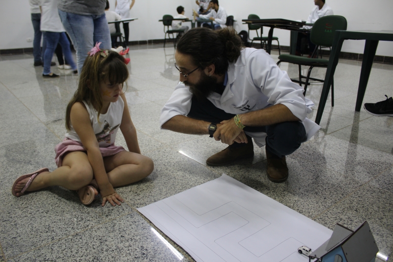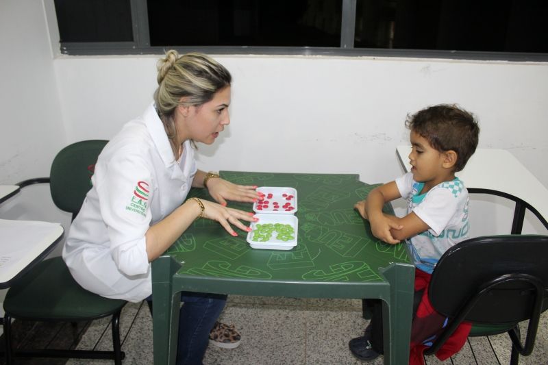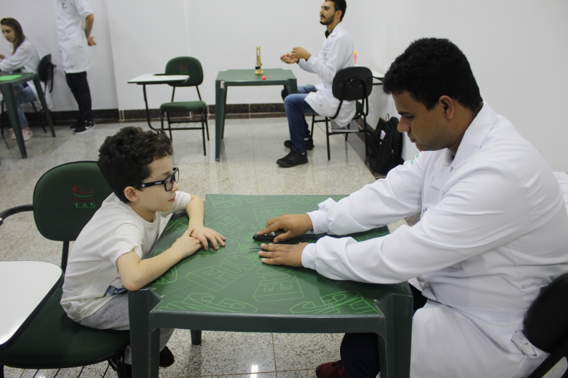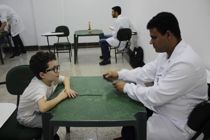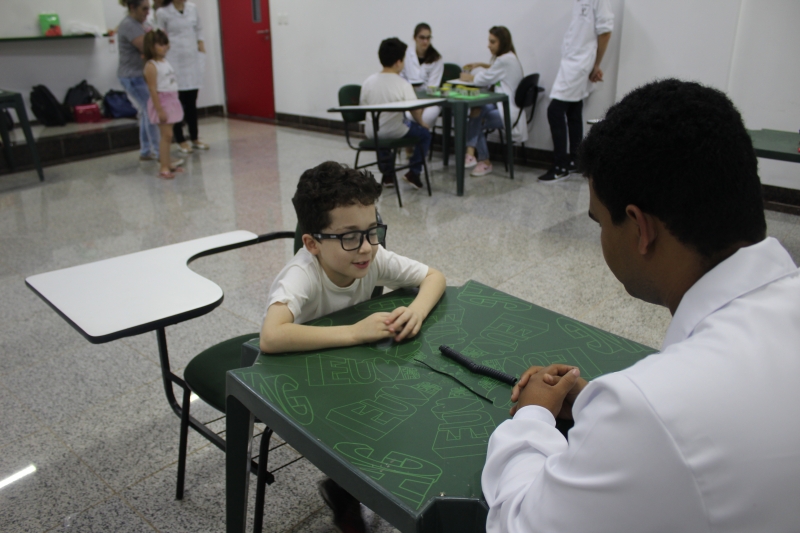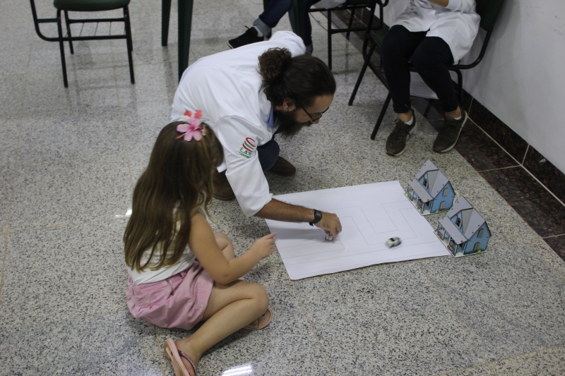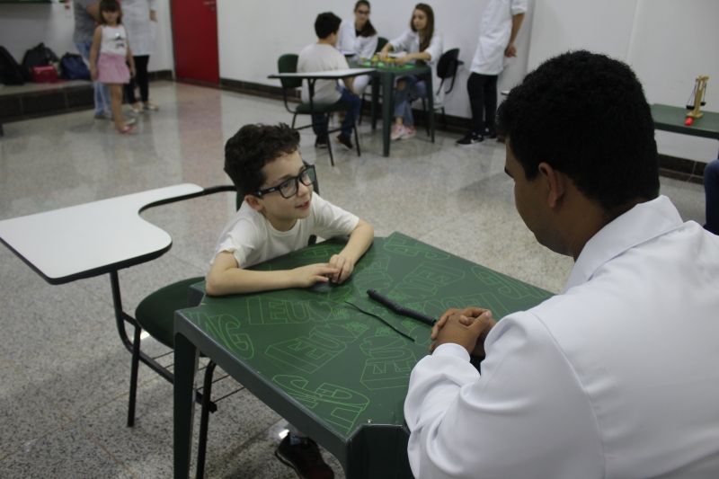 Crianças de 2 a 12 anos, acompanhadas pelos pais, participaram da atividade Provas Piagetianas, desenvolvida na disciplina de Desenvolvimento Humano do 1º período de Psicologia, ministrada pelo professor Silvio Vailões.