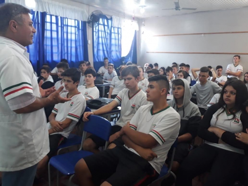 Em relação às escolas, foram visitados: o Colégio Arnaldo Busato, em Quedas do Iguaçu e o Colégio José de Alencar, em Braganey. Muitos alunos ainda estão em dúvida se vão ingressar no Ensino Superior, e De Angelis reforçou que "se pararem os estudos, automaticamente, eles entram para um grupo de pessoas menos qualificadas". A principal dúvida dos estudantes foi sobre as carreiras mais lucrativas. "Enfatizei que remuneração é consequência de um trabalho bem feito. É preciso fazer algo que você goste. Isso aumenta as suas chances de ser um profissional realizado e, como consequência, será bem remunerado".