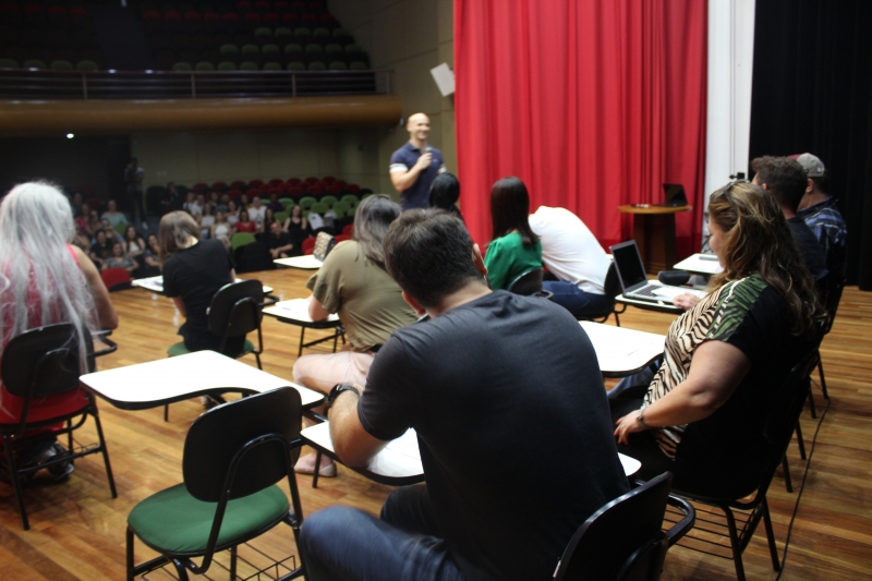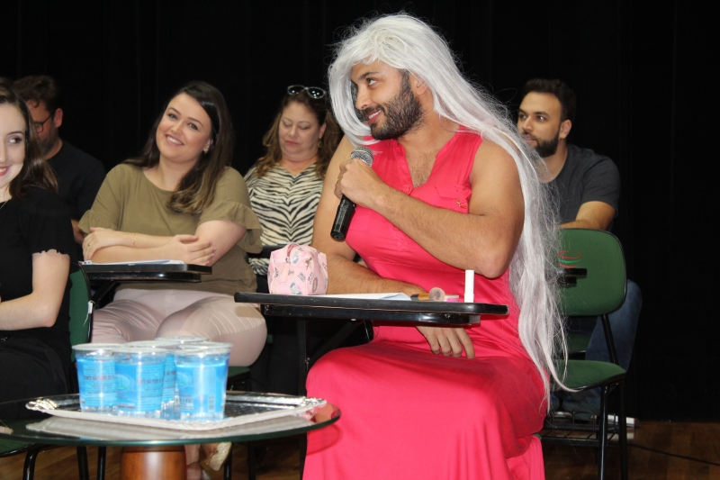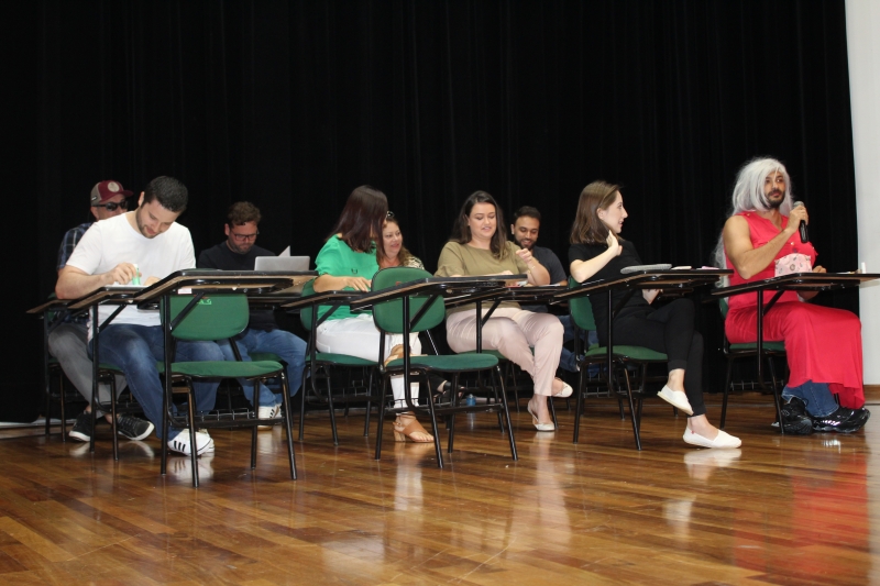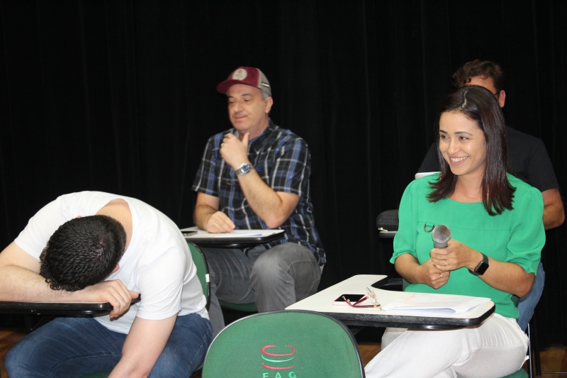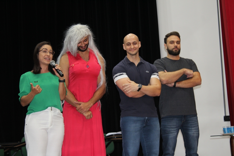 Os acadêmicos foram recepcionados no Anfiteatro da Reitoria. As primeiras reações que vieram à tona foram as gargalhadas com o teatro encenado pelos professores do colegiado. No roteiro da história que mostrava uma sala de aula, os docentes falaram algumas frases geralmente ouvidas na vida real: "Professor, vai fazer chamada?"; "Eu não consigo entender o motivo de termos essa disciplina no fim do curso"; "Professor, você também trabalha ou apenas dá aula?"; entre outras.