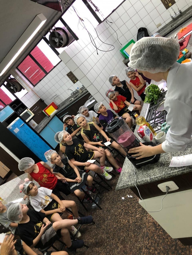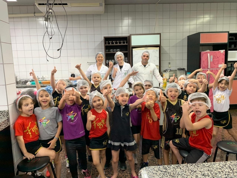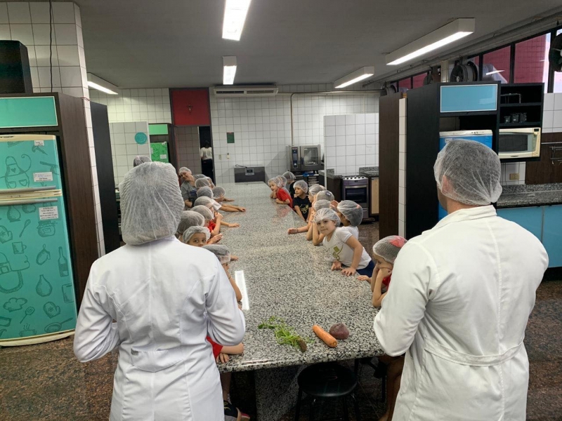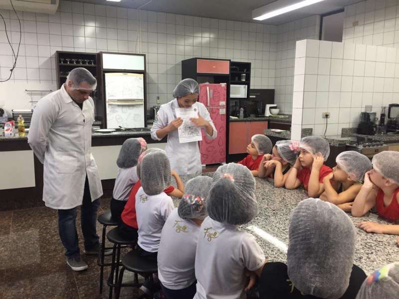 Além disso, os alunos puderam levar para casa uma pirâmide alimentar composta por vários alimentos para colorir e compreender de forma didática sobre a prática de uma alimentação adequada. Também levaram as receitas praticadas no Laboratório de Nutrição com a promessa de repeti-las em casa.
