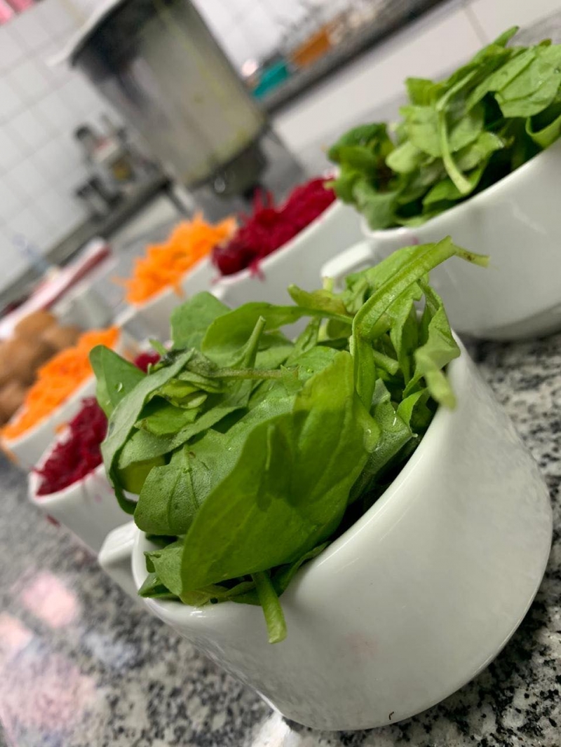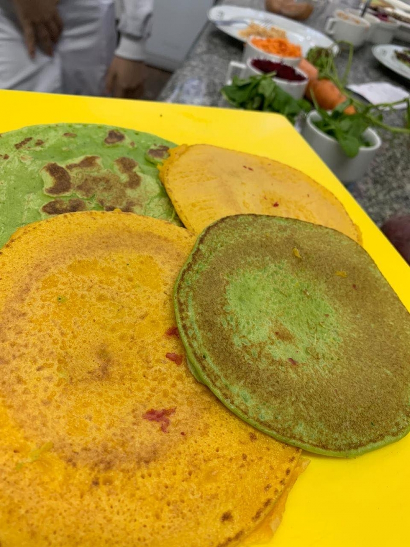 Os acadêmicos de Nutrição do Centro Universitário FAG, Carolina Hissatomi, Gabriela Roginski e Felipe Tartaro, realizaram com alunos do Colégio FAG uma atividade de Educação Nutricional (NUTRIKIDS). O prato escolhido foram panquecas coloridas. Foram selecionados 3 cores e legumes referentes às cores para a prática com as crianças: a panqueca verde com espinafre, a rosa com beterraba e a laranja com cenoura.