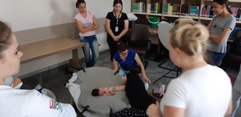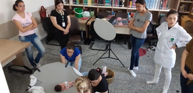 O curso contou com quatro módulos. No último sábado (23), a atividade foi encerrada com uma prática na Fundação Hospitalar São Lucas. Antes disso, os participantes receberam orientações sobre a saúde do bebê, como sinais vitais, manobras de desengasgo, higiene das mãos e dos equipamentos, cuidados com a circulação sanguínea e a coluna vertebral, posicionamento seguro, variações de poses, orientações para os pais, ângulos, iluminação e pós-produção.