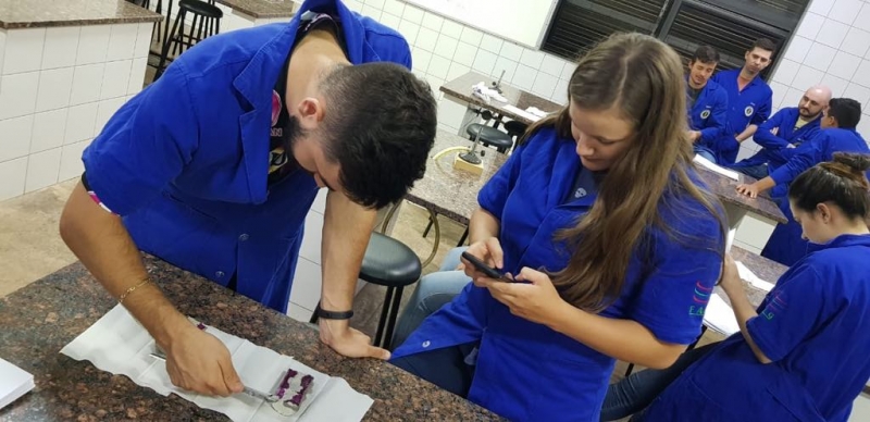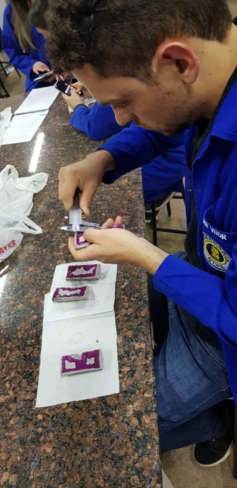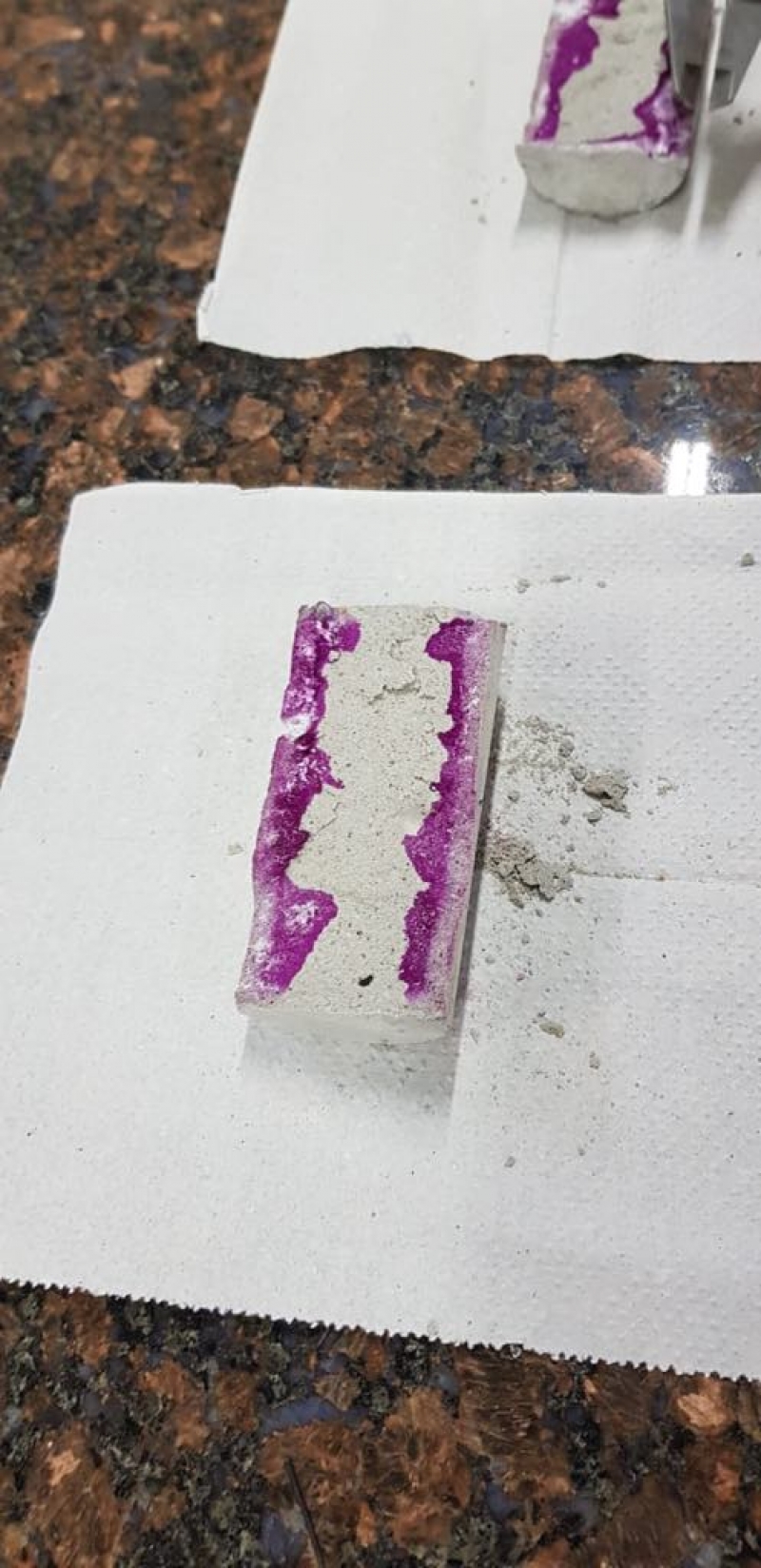 Na aula prática os corpos de prova foram rompidos e utilizou-se uma solução com fenolftaleína (um indicador de pH) para que os alunos pudessem observar a profundidade de carbonatação das peças. A intenção foi demostrar na prática o que foi observado na sala de aula e expandir os conhecimentos sobre ensaios para a detecção de problemas nas estruturas de concreto armado. "Aqui na FAG nós sempre estamos colocando os acadêmicos próximos da realidade profissional, mostrando técnicas que são úteis na profissão. Nesse caso, o ensaio de carbonatação cumpriu o papel de demonstrar aos alunos uma técnica importante para a verificação da ação de um agente agressivo tão comum, o gás carbônico, e os resultados de agressividade de alguns ambientes foi surpreendente", comenta o professor, Ricardo.