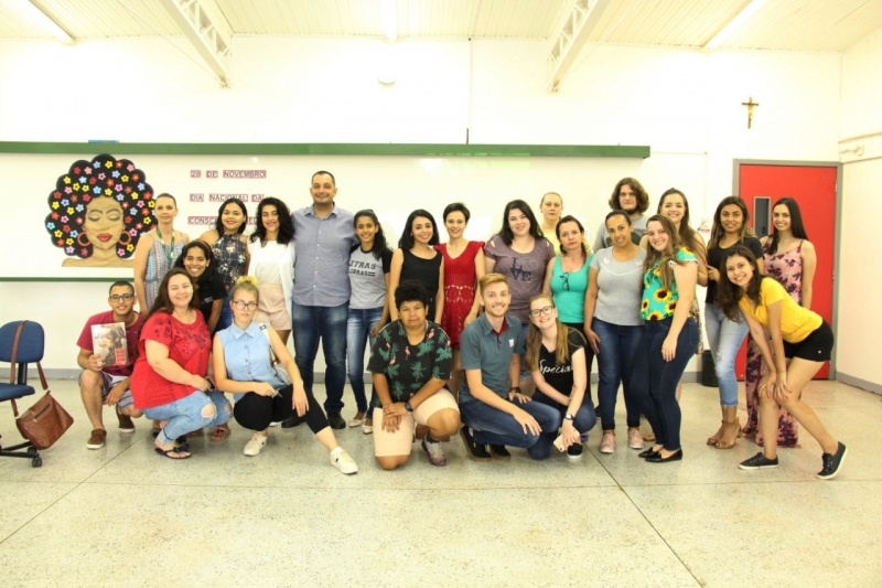 O curso de Letras Língua Portuguesa e Libras da FAG Toledo acaba de realizar o 2º Encontro da Consciência Negra da instituição. Nesta edição a base do evento foi uma roda de conversas sobre o ensino das relações étnico-raciais. "Os acadêmicos realizaram a apresentação e a dramatização de livros que são referência da literatura infanto-juvenil que tratam sobre a cultura afro-brasileira e afrodescendente", relata o professor Leandro Crestani responsável pela organização do encontro junto com a turma do 6º período do curso. O evento foi planejado e elaborado durante as aulas da disciplina de Atividades Práticas VI, ministrada pelo docente.