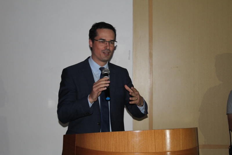 O terceiro palestrante a subir ao palco foi o procurador da república e comandante da força-tarefa da operação Lava Jato, Deltan Dallagnol, que trouxe aos participantes reflexões acerca do tema "Trabalhando Contra o Crime com Senso de Propósito". Para a plateia, a maioria policiais, o procurador ressaltou sobre a força que o propósito tem para não permitir a desistência diantes às adversidades. "Corrupção é um caso muito difícil de descobrir, quando descobre é difícil de comprovar, se comprova é difícil que não seja anulado, ainda mais se as pessoas são influentes. Se esse caso não é anulado demora décadas na justiça e prescreve, e quando não prescreve vem, de repente, um decreto de indulto", exemplificou.