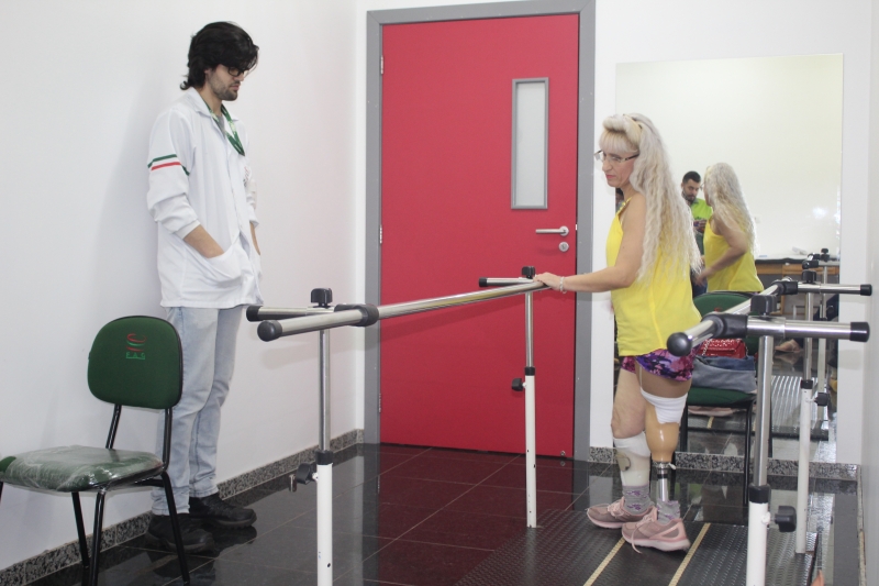 A caminhada de Doralice Plucinski hoje (03) até o Centro de Reabilitação das Clínicas FAG foi com dificuldade, se apoiando para se manter em pé. Quando ela foi embora, as passadas foram mais firmes, algo que ela desejava sentir há meses. A paciente recebeu sua prótese consertada depois que uma pequena peça teve problema. A troca foi possível a partir de uma parceria que envolveu o setor de próteses da Clínica e os cursos de Engenharia Mecânica e de Engenharia de Controle e Automação.