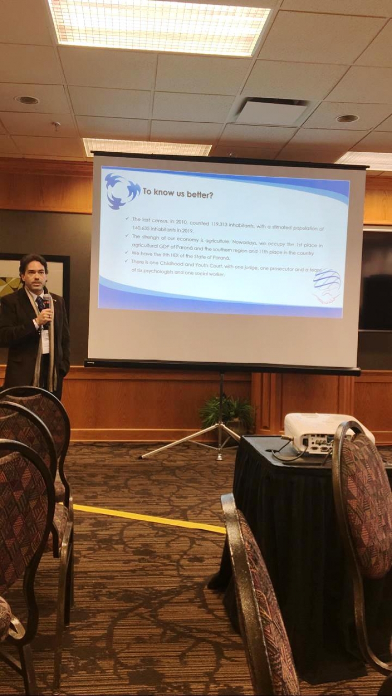 O docente explanou sobre a Justiça Restaurativa aplicada com os adolescentes em conflito com a lei e o trabalho de preparação para a ressocialização deles quando forem desligados do internamento. "Foi uma grande oportunidade de trocar experiências e levar ao Canadá o que fazemos em Toledo. Fomos muito abordados para receber feedbacks da importância do nosso trabalho e responder a perguntas sobre o nosso país", lembra.