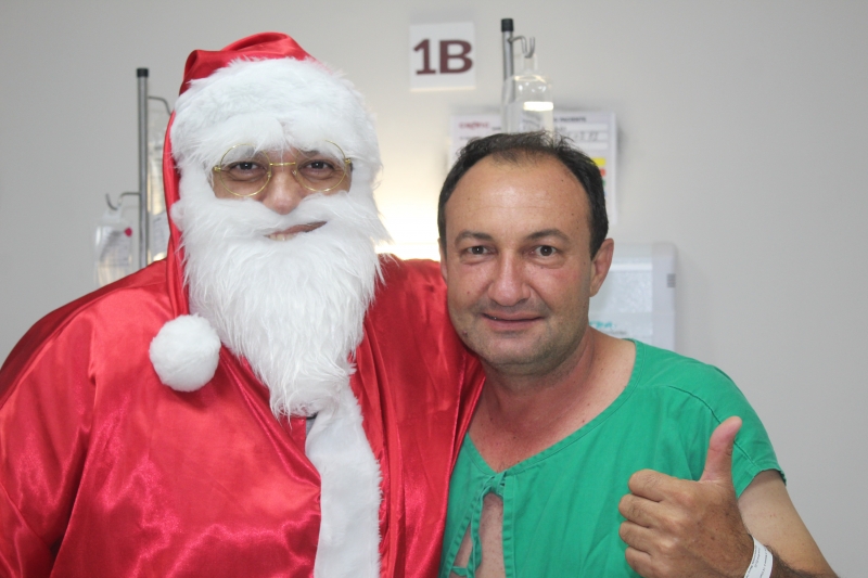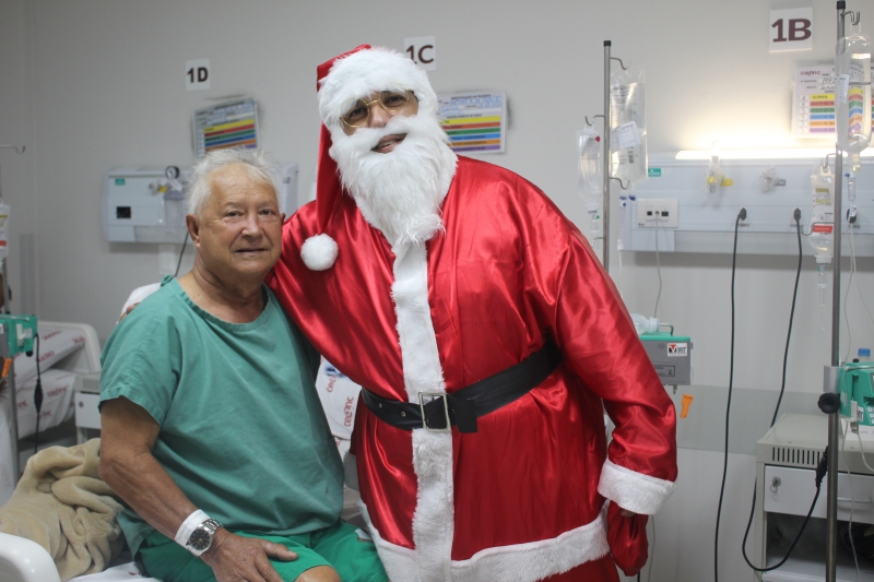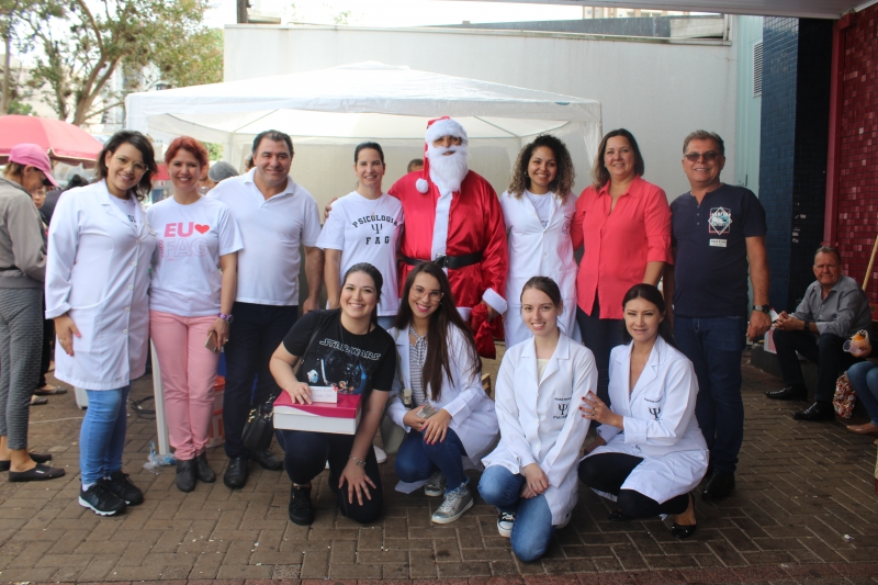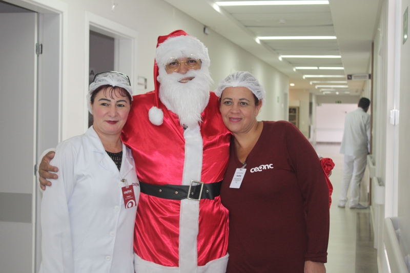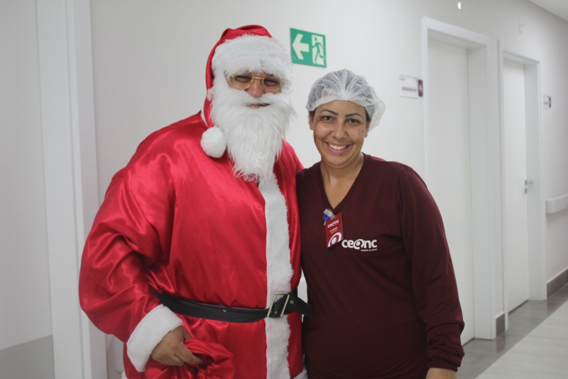 Com a parceria entre Centro FAG, C.Vale e voluntários, que já atuam no Ceonc, foi possível promover um completo café da manhã, no dia 12 de dezembro. A solenidade contou com a benção do Padre Marcos e atrações musicais. O Papai Noel também esteve presente para levar carinho, principalmente aos pacientes internados, e que fizeram questão de posar para fotos ao lado do bom velhinho. Sobre o clima contagiante, as calouras de Medicina Eloísa e Mariana, que iniciarão o curso em 2020, viram o evento na agenda do site da FAG e foram até o Ceonc para ajudar nos trabalhos.