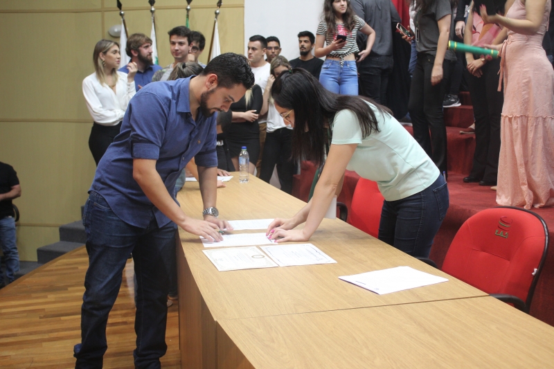 Novos profissionais foram graduados, nesta segunda-feira (16), em uma cerimônia extemporânea de colação de grau, que aconteceu no anfiteatro da reitoria, com a presença de familiares e professores. A solenidade atende à solicitação de alunos que concluíram o curso e precisam do diploma imediatamente.