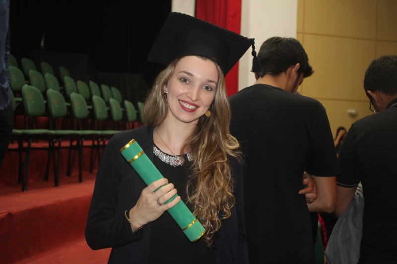 Rhulian Felício graduou-se em Arquitetura e Urbanismo e já trabalha na área há dois anos. Agora formado novas responsabilidades vêm pela frente. "Escolhi fazer a colação extemporânea porque o meu sócio viaja frequentemente e eu preciso assumir o escritório como arquiteto. Apesar de não estar com a turma toda colando grau, me sinto emocionado em concluir essa etapa".