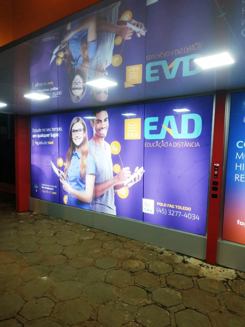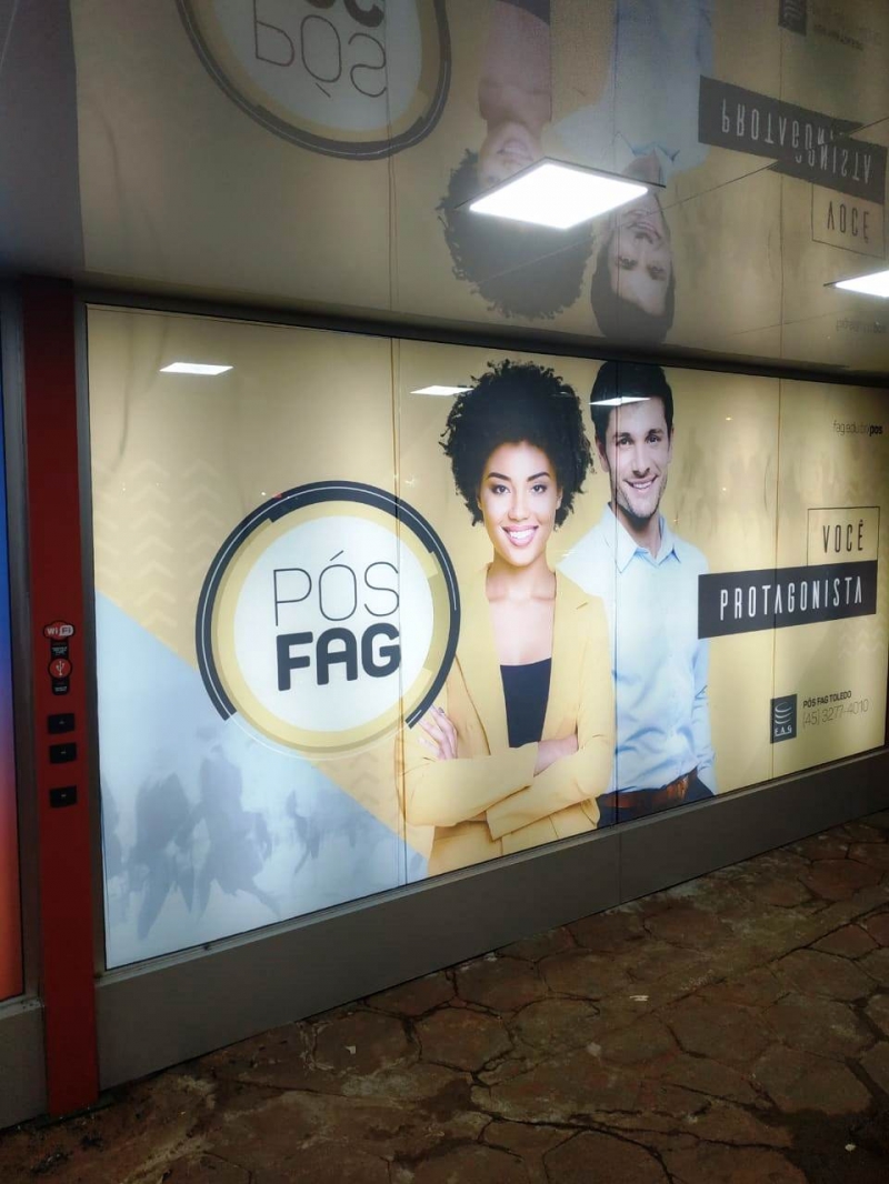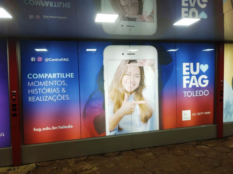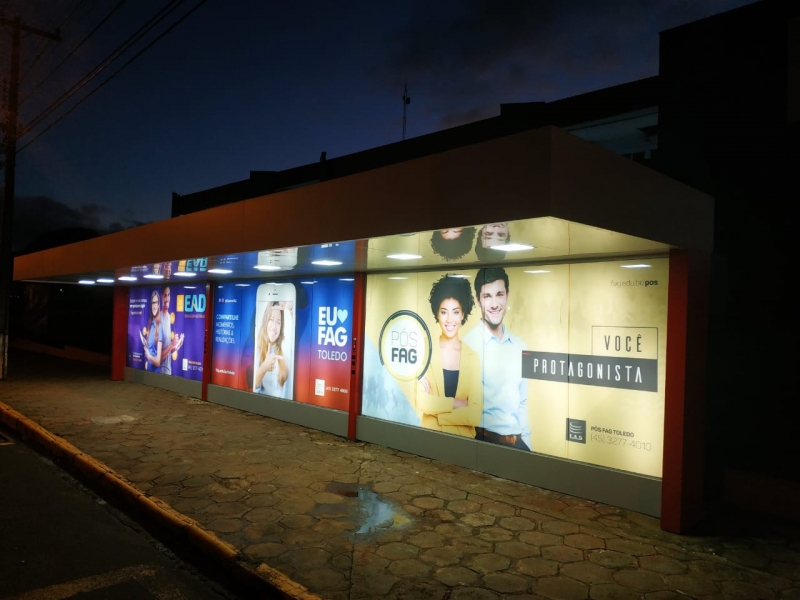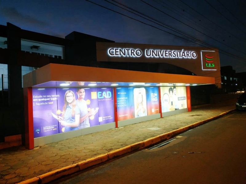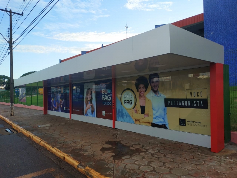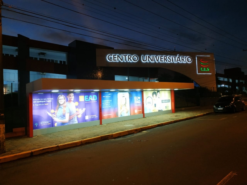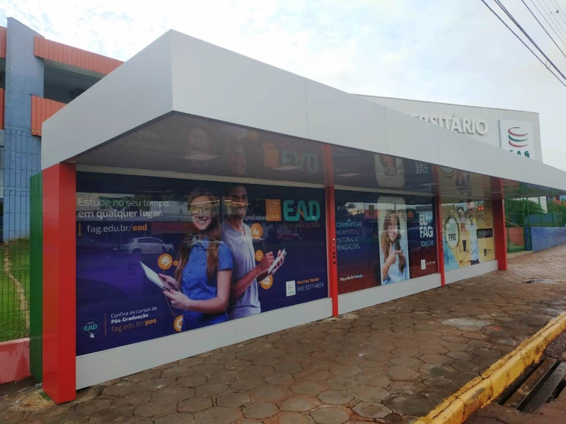 A FAG Toledo finalizou nesta terça-feira a instalação do ponto de ônibus especial em frente ao bloco administrativo da instituição, na Avenida Ministro Cirne Lima. A estrutura recebeu revestimento em vidro e plástico de alta resistência nas cores da FAG. Também foram instalados painéis e spots com luzes de LED e dois painéis com tomadas USB para carregar celular. O ponto também conta com rede wifi livre para usuários cadastrados. "Nós temos centenas de acadêmicos que utilizam o ônibus como meio de transporte. Temos alunos que são de outras cidades e que quando acaba a aula ficam em frente à FAG Toledo esperando o ônibus que às vezes demora em vir", explica o diretor da FAG Toledo Ildo Bombardelli.